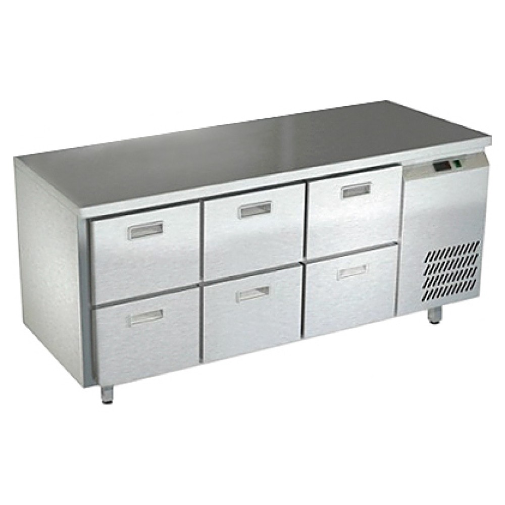 Холодильный стол Техно-ТТ СПБ/Т-123/06-1806 предназначен для раскатки теста, обработки, заморозки и кратковременного хранения продуктов и напитков, а также для размещения теплового оборудования на предприятиях общественного питания и торговли. Модель оснащена компрессором производства Испании, 6 гастронормированными ящиками и опорными круглыми ножками. Корпус и столешница выполнены из нержавеющей стали AISI 430, задняя стенка и дно - из оцинкованной стали.