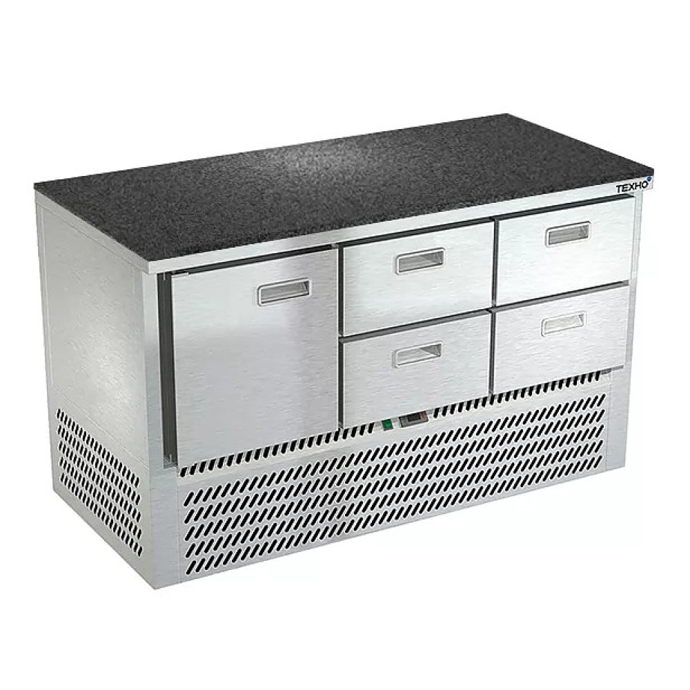 Холодильный стол Техно-ТТ СПН/О-322/14-1407 предназначен для раскатки теста, обработки, охлаждения и кратковременного хранения продуктов и напитков на предприятиях общественного питания и торговли. Модель оснащена компрессором (Испания), секция - направляющими и сетчатой полкой, дверь и ящики - доводчиками. Корпус выполнен из нержавеющей стали, задняя стенка и дно - из оцинкованной стали. Столешница из камня.