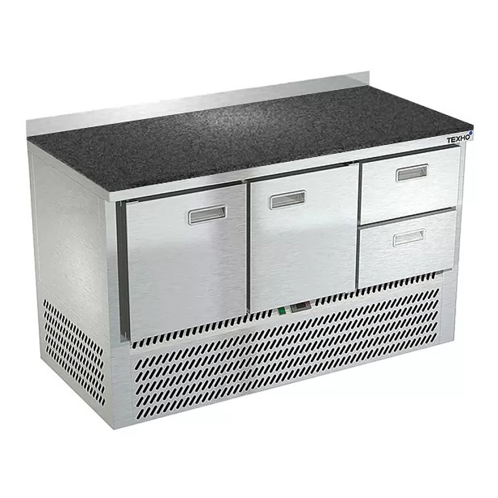 Холодильный стол Техно-ТТ СПН/О-422/22-1407 предназначен для раскатки теста, обработки, охлаждения и кратковременного хранения продуктов и напитков на предприятиях общественного питания и торговли. Модель оснащена компрессором (Испания), каждая секция - направляющими и сетчатой полкой, дверь и ящики - доводчиками. Корпус выполнен из нержавеющей стали, столешница из камня, задняя стенка и дно - из оцинкованной стали.