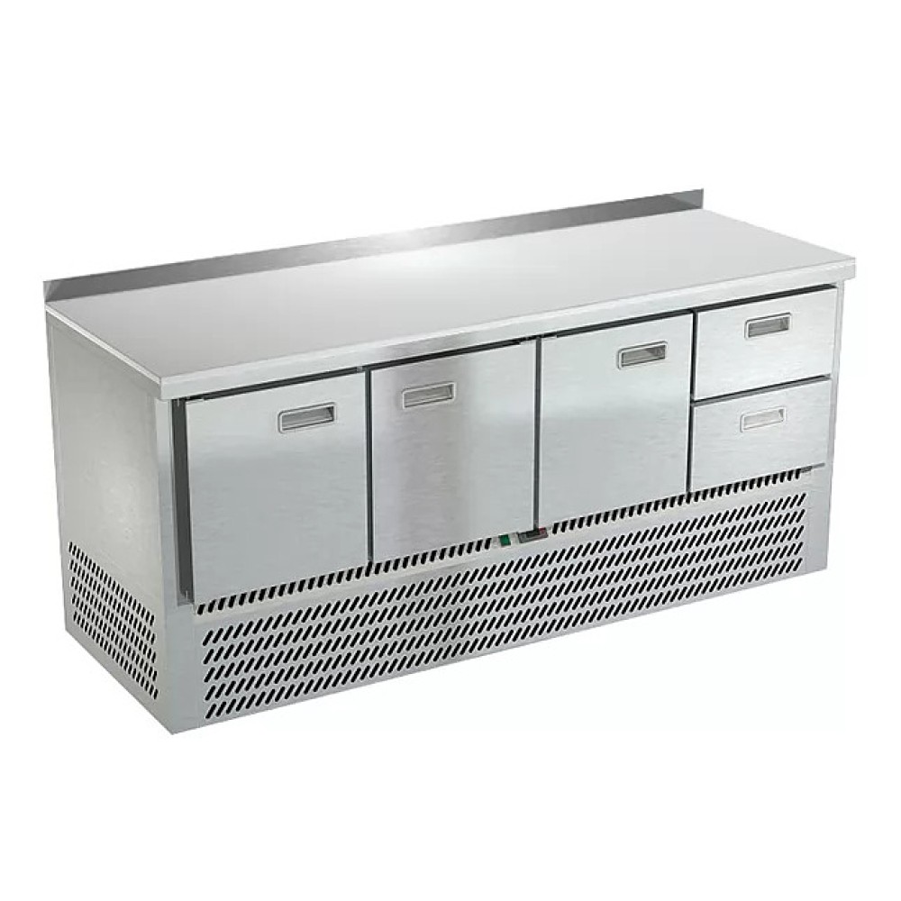 Холодильный стол Техно-ТТ СПН/О-622/32-1906 предназначен для обработки, охлаждения и кратковременного хранения продуктов и напитков на предприятиях общественного питания и торговли. Модель оснащена бортом, компрессором (Испания), двери и ящики - доводчиками. Корпус выполнен из нержавеющей стали марки AISI 430, столешница из полипропилена, задняя стенка и дно - из оцинкованной стали.