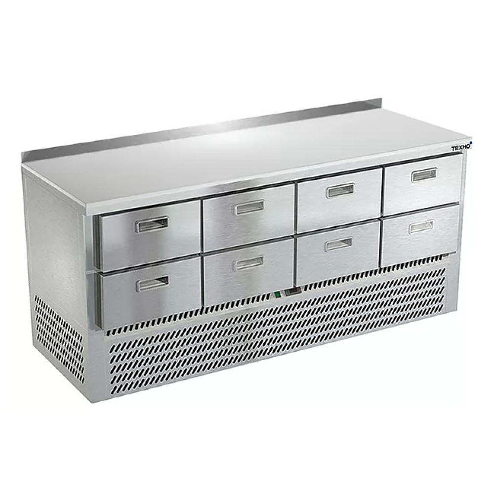 Холодильный стол Техно-ТТ СПН/О-623/08-1906 предназначен для обработки, охлаждения и кратковременного хранения продуктов и напитков на предприятиях общественного питания и торговли. Модель оснащена бортом, компрессором (Испания), двери и ящики - доводчиками. Корпус выполнен из нержавеющей стали марки AISI 430, столешница из полипропилена, задняя стенка и дно - из оцинкованной стали.