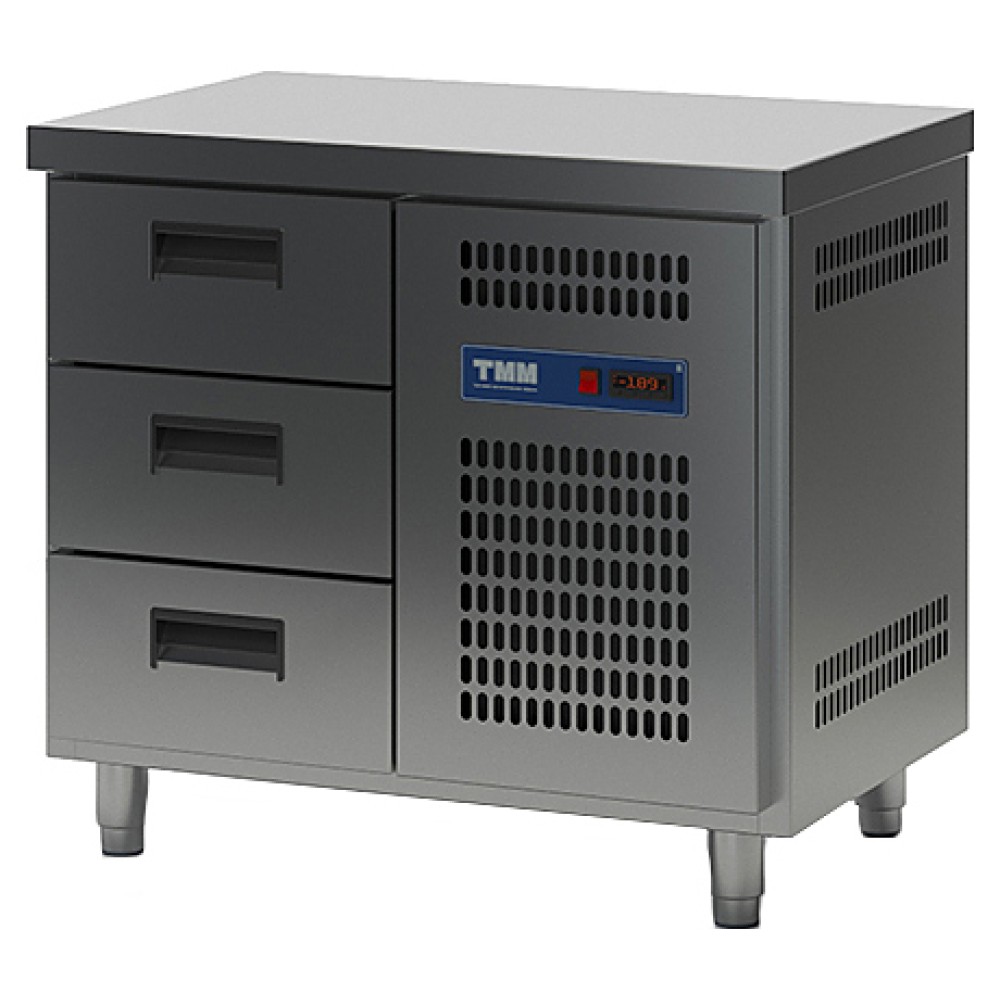 Холодильный стол ТММ СХСБ-К-1/3Я предназначен для раскатки теста, обработки ингредиентов для приготовления блюд, охлаждения и кратковременного хранения скоропортящихся продуктов и напитков на предприятиях общественного питания и торговли. Цельнозаливной корпус и фасад выполнены из нержавеющей стали AISI 340, задняя стенка - из оцинкованной стали.