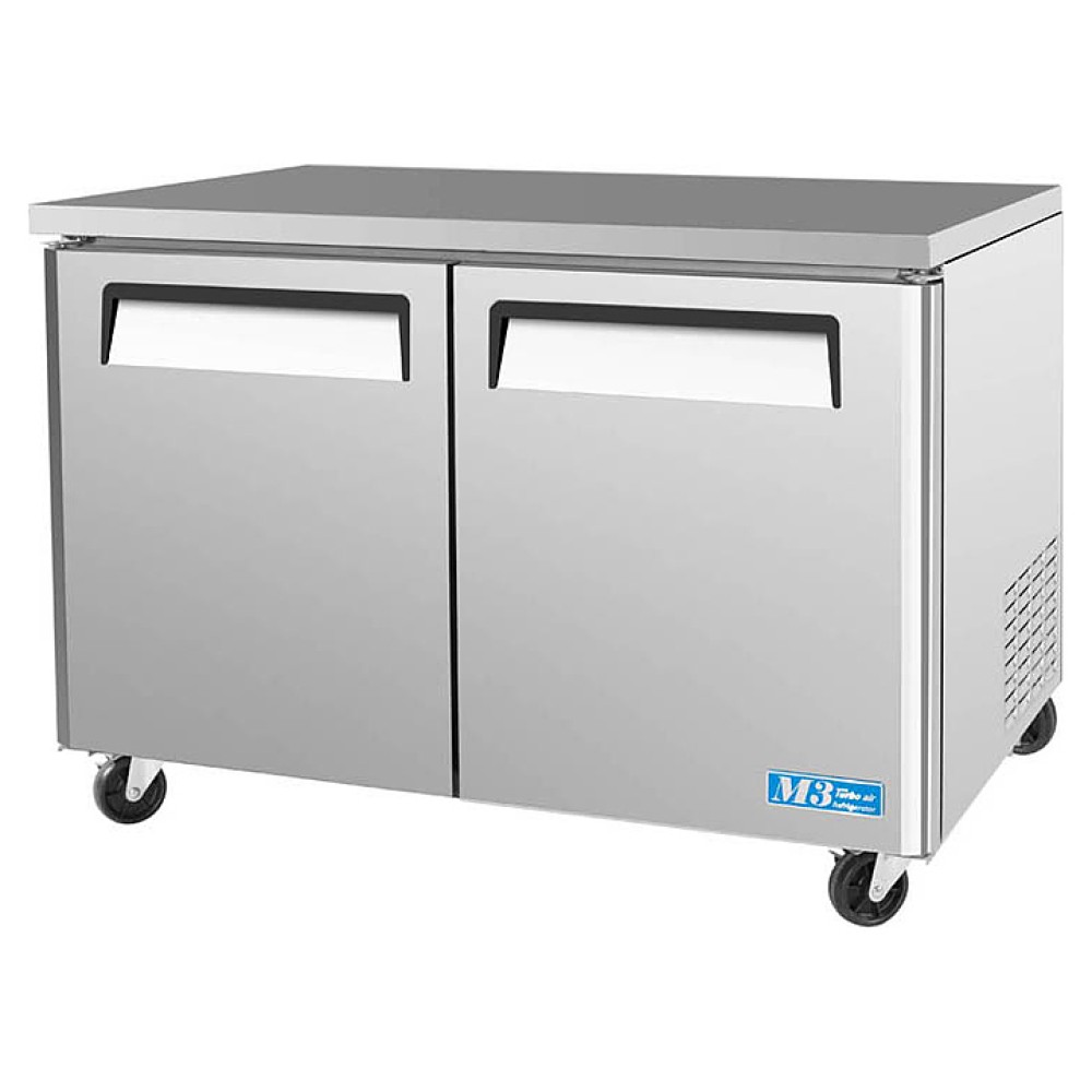 Холодильный стол Turbo air CMUR-48 предназначен для раскатки теста, обработки, охлаждения и кратковременного хранения продуктов и напитков на предприятиях общественного питания и торговли. Корпус выполнен из нержавеющей стали (гальванизированная сталь на оборотной стороне и внизу) с применением пожаробезопасных стенок толщиной 60 мм, уплотнения - из АБС-пластика, пол - из нержавеющей стали с алюминиевыми вставками по бокам и сзади оборудования, регулируемые полки - из толстой стальной проволоки с виниловым покрытием.