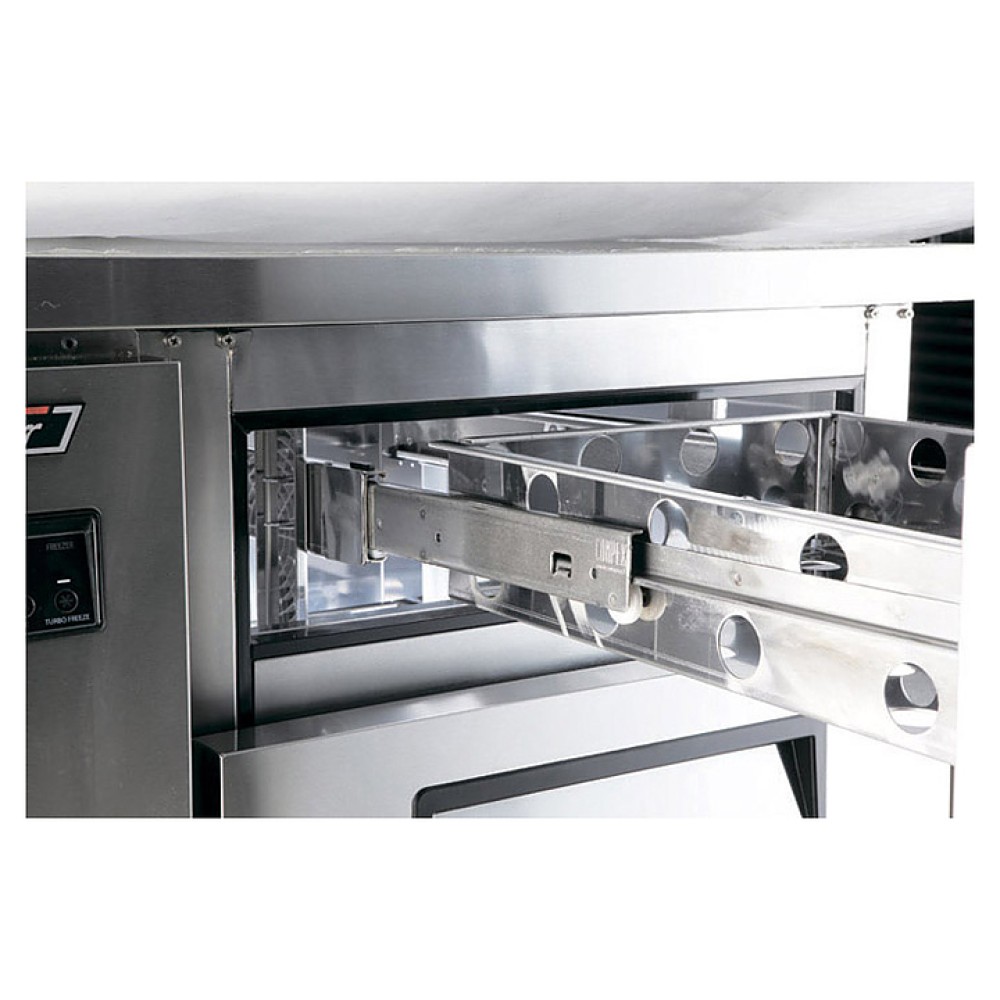 Холодильный стол Turbo air KUR18-3D-3 предназначен для раскатки теста, обработки, охлаждения и кратковременного хранения продуктов и напитков на предприятиях общественного питания и торговли. Модель оснащена 3 ящиками GN 1/1 глубиной 100 мм, 2 полками и 6 регулируемыми ножками. Корпус Корпус выполнен из нержавеющей стали (гальванизированная сталь на оборотной стороне и внизу) с применением пожаробезопасных стенок толщиной 60 мм, уплотнения - из АБС-пластика (акрилонитрилбутадиенстирола), не пропускающего конденсата, пол - из нержавеющей стали с алюминиевыми вставками по бокам и сзади оборудования, тройные направляющие - из высококачественной нержавеющей стали.