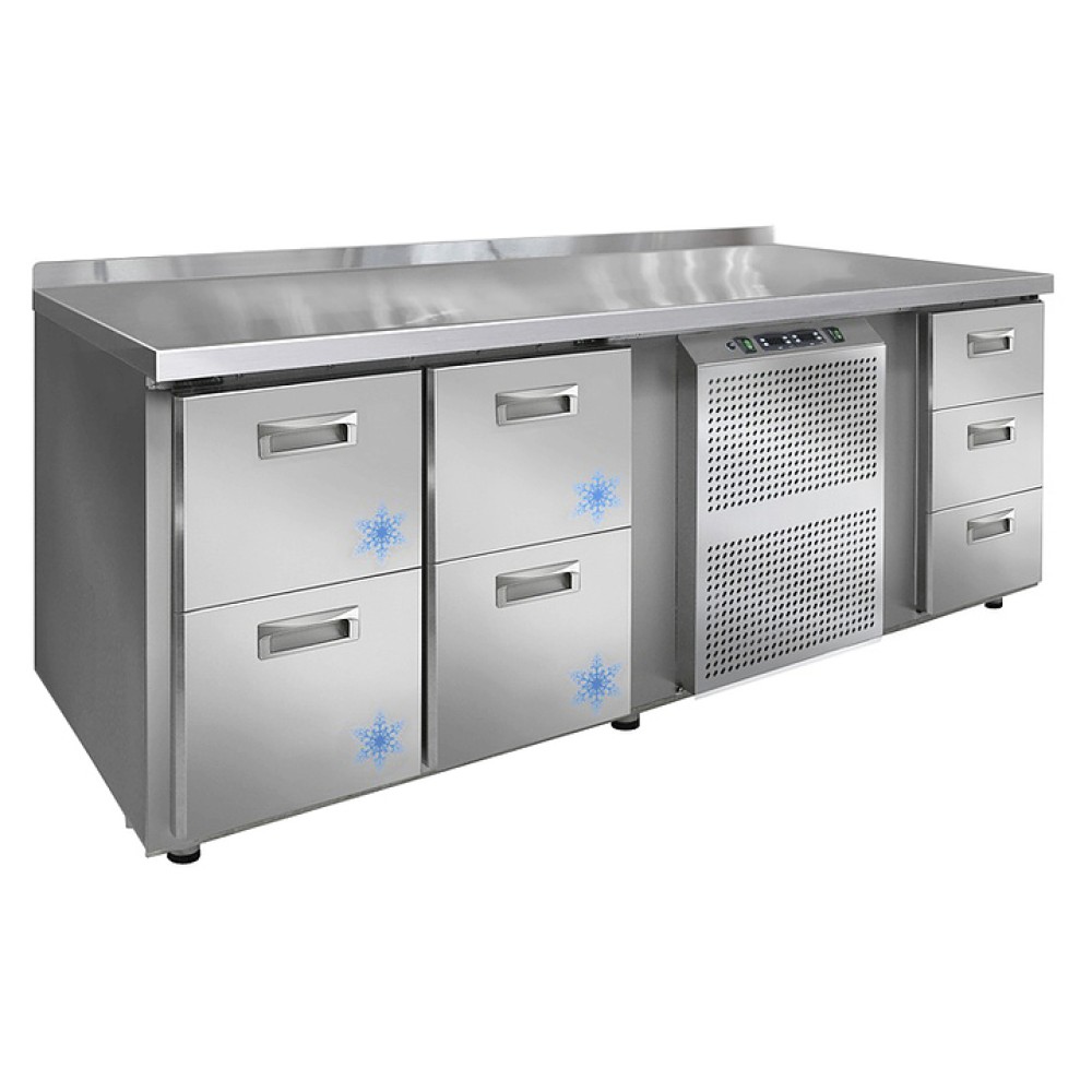 Холодильно-морозильный стол Finist КХС-700-3/4 предназначен для хранения замороженных полуфабрикатов и предварительно охлажденных готовых блюд, заготовок для салатов, молочной продукции и напитков на предприятиях общественного питания и торговли. Модель сочетает в себе 2 независимых рабочих объема и оснащена 2 панелями управления для регулировки температуры в камерах. Оборудование полностью выполнено из высококачественной пищевой нержавеющей стали.