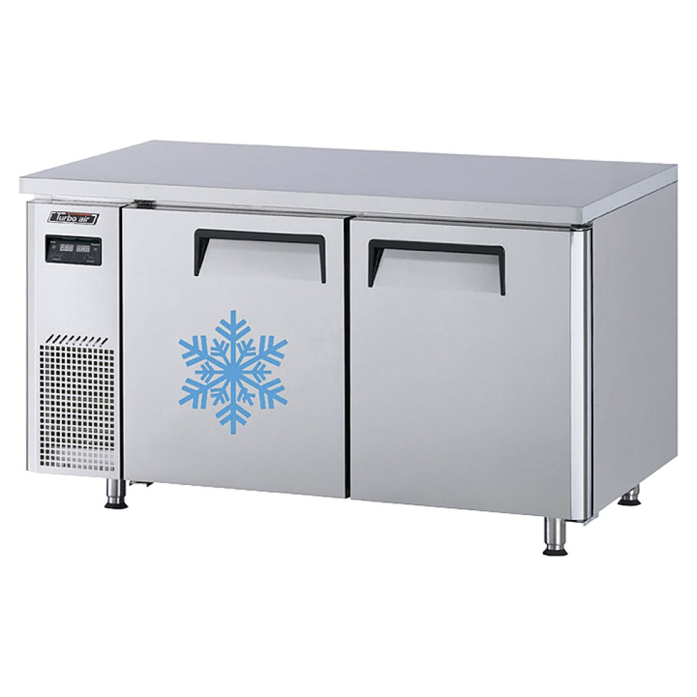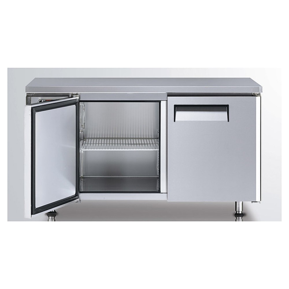 Холодильно-морозильный стол Turbo air KURF12-2 состоит из рабочей поверхности, на которой можно раскатывать тесто и обрабатывать ингредиенты для приготовления блюд, и камеры, предназначенной для заморозки, охлаждения и хранения продуктов, полуфабрикатов, мороженого и напитков на предприятиях пищевой промышленности, общественного питания и торговли. Корпус выполнен из нержавеющей стали с применением пожаробезопасных стенок толщиной 60 мм и уплотнения из теплоэффективного АБС-пластика (акрилонитрилбутадиенстирола), не пропускающего конденсата, оборотная сторона и низ - из гальванизированной стали, пол - из нержавеющей стали с алюминиевыми вставками по бокам и сзади, регулируемые полки - из толстой стальной проволоки с виниловым покрытием, 4 регулируемые ножки - из нержавеющей стали.