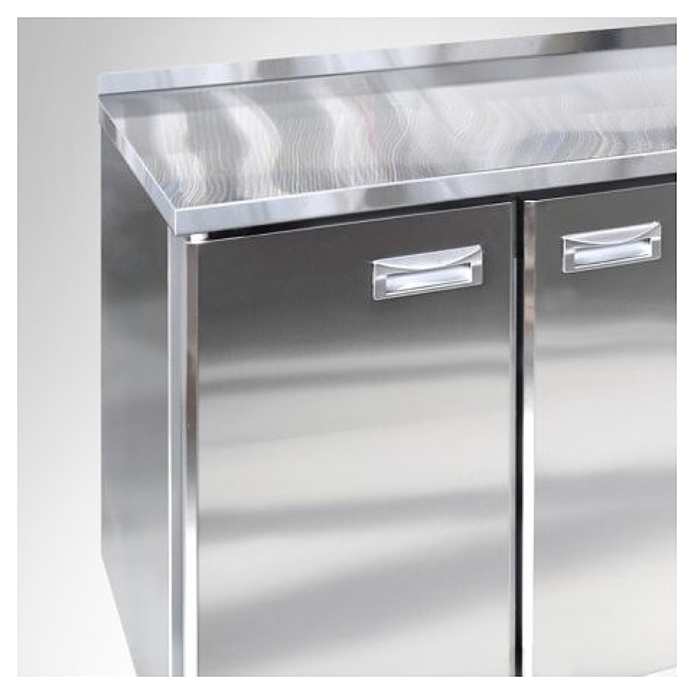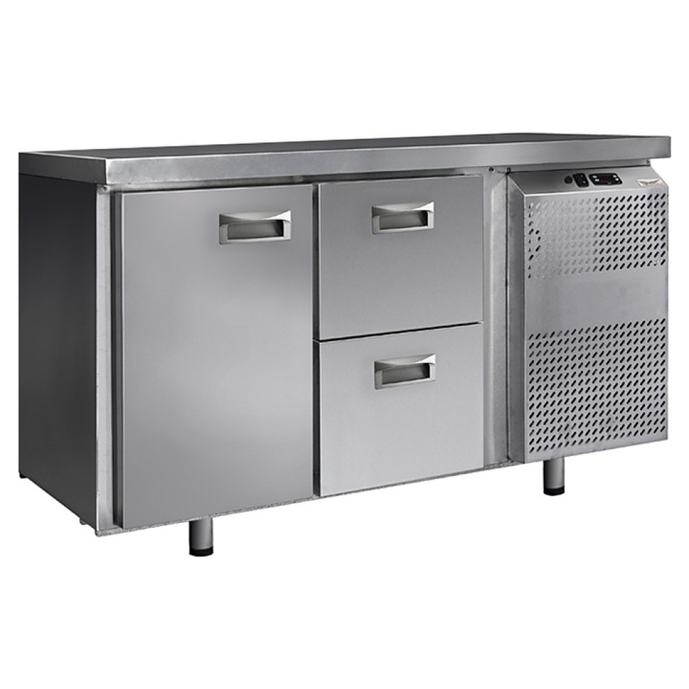 Морозильный стол Finist НХС-700-1/2 предназначен для хранения предварительно замороженных пищевых продуктов на предприятиях общественного питания и торговли. Модель оснащена расположенным сбоку агрегатным отсеком, столешницей с задним бортом, холодильной камерой с распашной дверцей, 2 выдвижными ящиками, устойчивыми ножками с подпятниками, кабелем питания с евровилкой и кнопочной панелью управления с цифровым дисплеем. Цельнозаливной корпус выполнен из высококачественной нержавеющей стали.