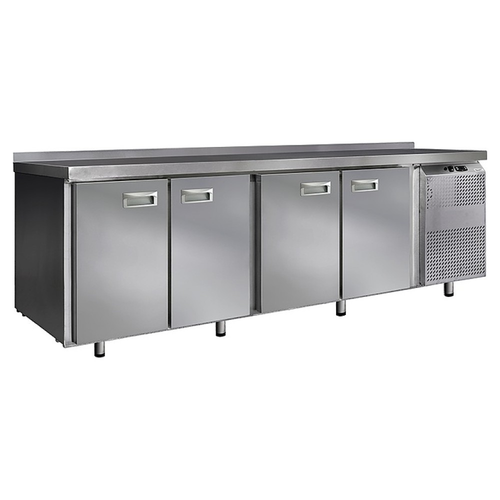 Морозильный стол Finist НХС-700-4 предназначен для хранения предварительно замороженных пищевых продуктов на предприятиях общественного питания и торговли. Модель оснащена расположенным сбоку агрегатным отсеком, столешницей с задним бортом, 4 холодильными камерами с распашными дверцами, устойчивыми ножками с подпятниками, кабелем питания с евровилкой и кнопочной панелью управления с цифровым дисплеем. Цельнозаливной корпус выполнен из высококачественной нержавеющей стали.