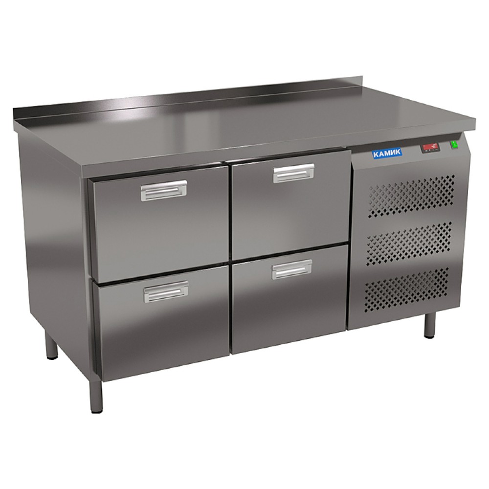 Морозильный стол КАМИК СМБ-04146 используется на предприятиях общественного питания и торговли для заморозки и длительного хранения продуктов, полуфабрикатов и мороженого. Конструкция разделена на секции, каждая секция с дверью, оснащена полкой сетчатой и парой направляющих. Корпус выполнен из нержавеющей стали AISI 430.