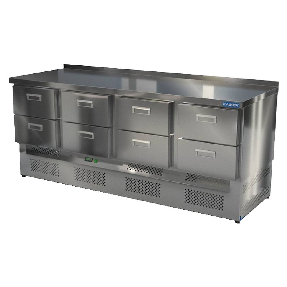 Морозильный стол КАМИК СМНБ-08206 используется на предприятиях общественного питания и торговли для заморозки и длительного хранения продуктов, полуфабрикатов и мороженого. Корпус выполнен из нержавеющей стали AISI 430 толщиной 1 мм, столешница - из нержавеющей стали AISI 304 толщиной 1,5 мм.