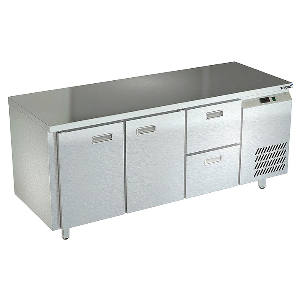 Морозильный стол Техно-ТТ СПБ/М-122/22-1807 предназначен для раскатки теста, обработки, заморозки и долговременного хранения продуктов, полуфабрикатов, напитков и мороженого на предприятиях общественного питания и торговли. Модель оснащена 2 секциями с 2 дверьми и регулируемой полкой-решеткой, 1 секцией с 2 ящиками, направляющими с доводчиками (Австрия), петлями-доводчиками (Польша) и круглыми ножками, регулируемыми по высоте на 50 мм (Италия). Корпус и столешница выполнены из нержавеющей стали AISI 430, задняя стенка и дно - из оцинкованной стали.