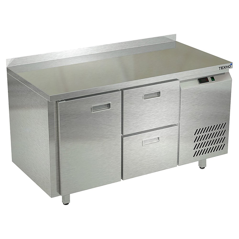 Морозильный стол Техно-ТТ СПБ/М-222/12-1306 предназначен для раскатки теста, обработки, заморозки и долговременного хранения продуктов, полуфабрикатов, напитков и мороженого на предприятиях общественного питания и торговли. Модель оснащена 1 секцией с дверью и регулируемой полкой-решеткой, 1 секцией с 2 ящиками, направляющими с доводчиками (Австрия), петлями-доводчиками (Польша), бортом и круглыми ножками, регулируемыми по высоте на 50 мм (Италия). Корпус и столешница выполнены из нержавеющей стали AISI 430, задняя стенка и дно - из оцинкованной стали.