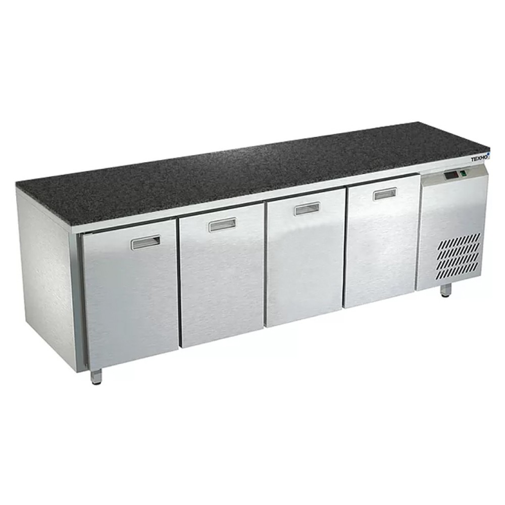 Морозильный стол Техно-ТТ СПБ/М-322/13-2207 предназначен для раскатки теста, обработки, заморозки и долговременного хранения продуктов, полуфабрикатов, напитков и мороженого на предприятиях общественного питания и торговли. Модель оснащена 1 секцией с дверью и регулируемой полкой-решеткой, 3 секциями с 3 ящиками, направляющими с доводчиками (Австрия), петлями-доводчиками (Польша) и круглыми ножками, регулируемыми по высоте на 50 мм (Италия). Корпус выполнен из нержавеющей стали AISI 430, задняя стенка и дно - из оцинкованной стали, столешница - из камня.