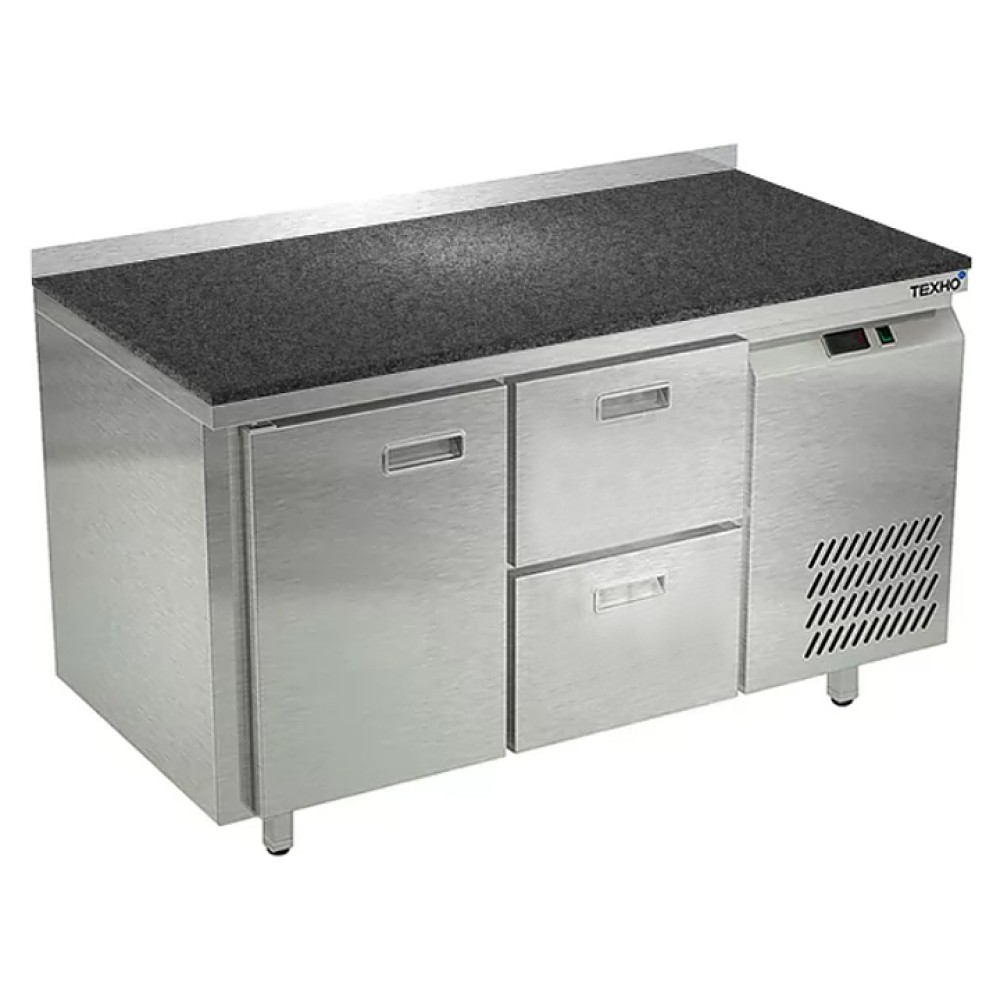 Морозильный стол Техно-ТТ СПБ/М-422/12-1307 предназначен для раскатки теста, обработки, заморозки и долговременного хранения продуктов, полуфабрикатов, напитков и мороженого на предприятиях общественного питания и торговли. Модель оснащена 1 секцией с дверью и регулируемой полкой, 1 секцией с 2 ящиками, направляющими с доводчиками (Австрия), петлями-доводчиками (Польша), бортом и круглыми ножками, регулируемыми по высоте на 50 мм (Италия). Корпус выполнен из нержавеющей стали AISI 430, задняя стенка и дно - из оцинкованной стали, столешница - из камня.