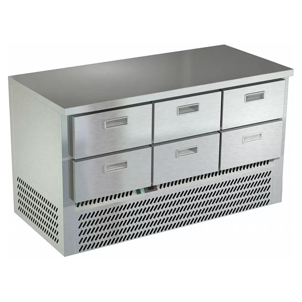 Морозильный стол Техно-ТТ СПН/М-123/06-1406 предназначен для раскатки теста, обработки, заморозки и долговременного хранения продуктов, полуфабрикатов, напитков и мороженого на предприятиях общественного питания и торговли. Модель оснащена компрессором, произведенным в Испании, 6 гастронормированными ящиками, направляющими с доводчиками (Австрия) и регулируемыми опорными ножками. Корпус и столешница выполнены из нержавеющей стали AISI 430, задняя стенка и дно - из оцинкованной стали.