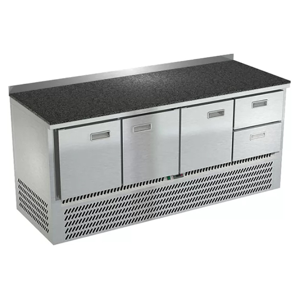 Морозильный стол Техно-ТТ СПН/М-422/32-1906 предназначен для раскатки теста, обработки, заморозки и долговременного хранения продуктов, полуфабрикатов, напитков и мороженого на предприятиях общественного питания и торговли. Модель оснащена компрессором, произведенным в Испании, 3 дверями с доводчиками (Польша), 3 регулируемыми по высоте полками-решетками, 2 гастронормированными ящиками, направляющими с доводчиками (Австрия) и регулируемыми опорными ножками. Корпус выполнен из нержавеющей стали AISI 430, задняя стенка и дно - из оцинкованной стали, столешница - каменная.