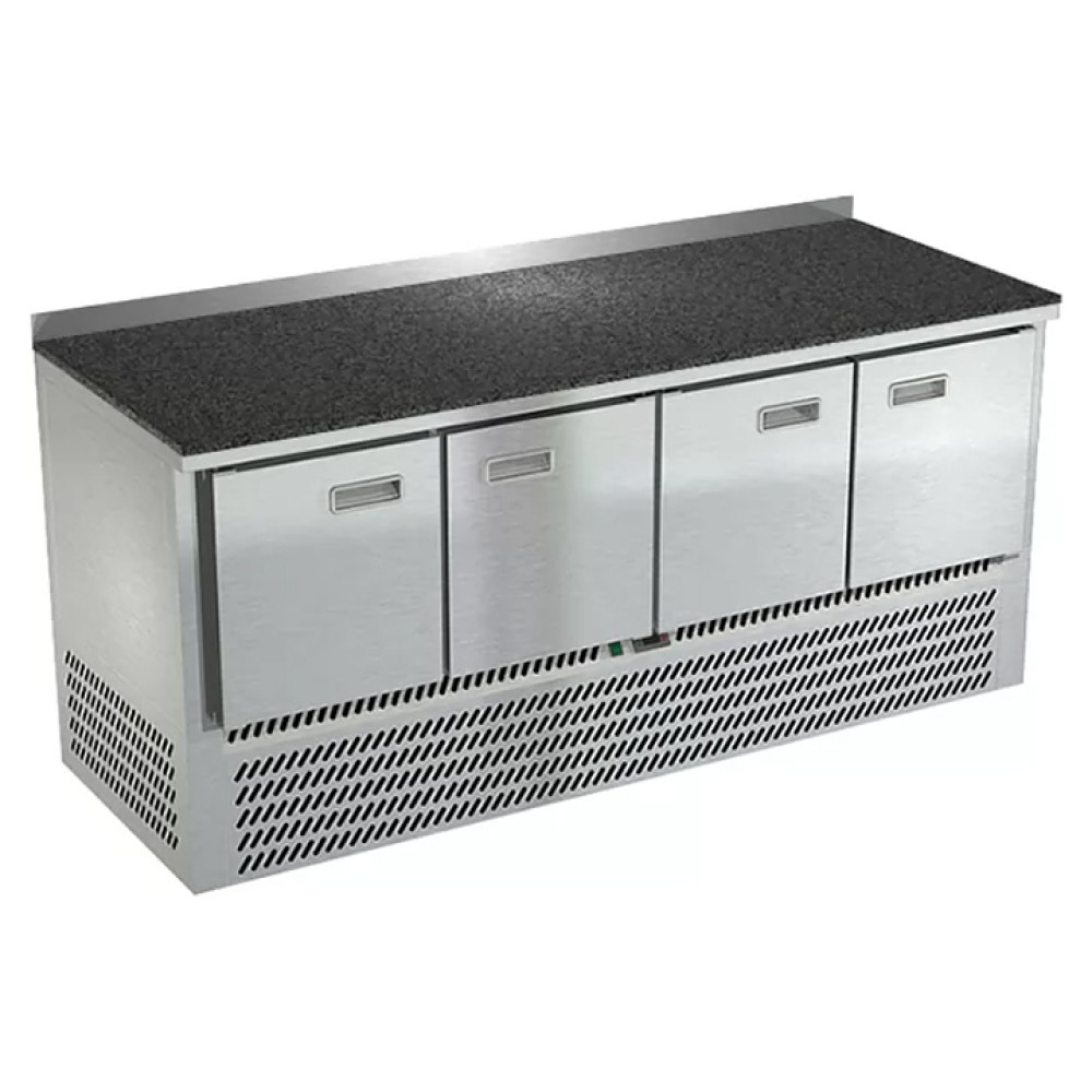 Морозильный стол Техно-ТТ СПН/М-423/04-1907 предназначен для раскатки теста, обработки, заморозки и долговременного хранения продуктов, полуфабрикатов, напитков и мороженого на предприятиях общественного питания и торговли. Модель оснащена компрессором, произведенным в Испании, 4 гастронормированными ящиками, направляющими с доводчиками (Австрия) и регулируемыми опорными ножками. Корпус выполнен из нержавеющей стали AISI 430, задняя стенка и дно - из оцинкованной стали, столешница - каменная.