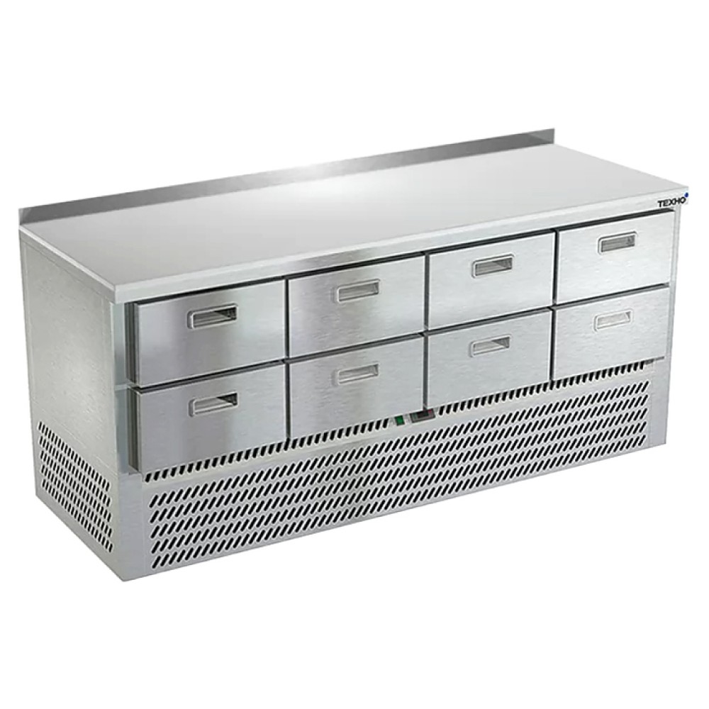 Морозильный стол Техно-ТТ СПН/М-623/08-1906 предназначен для раскатки теста, обработки, заморозки и долговременного хранения продуктов, полуфабрикатов, напитков и мороженого на предприятиях общественного питания и торговли. Модель оснащена компрессором, произведенным в Испании, 8 гастронормированными ящиками, направляющими с доводчиками (Австрия) и регулируемыми опорными ножками. Корпус выполнен из нержавеющей стали AISI 430, задняя стенка и дно - из оцинкованной стали, столешница - из полипропилена.