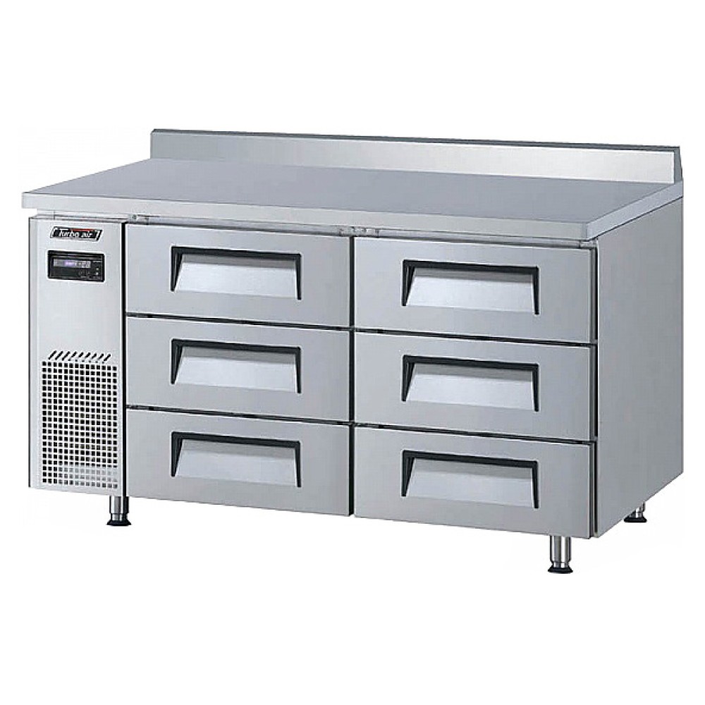 Морозильный стол Turbo air KWF15-3D-6-600 предназначен для обработки, охлаждения, заморозки и длительного хранения пищевых продуктов на предприятиях общественного питания и торговли. Модель оснащена 6 ящиками и 4 регулируемыми ножками. Корпус выполнен из нержавеющей стали (гальванизированная сталь на оборотной стороне и внизу), пол - из нержавеющей стали с алюминиевыми вставками по бокам и сзади, тройные направляющие ящиков - из высококачественной нержавеющей стали, уплотнение - из ABS-пластика.