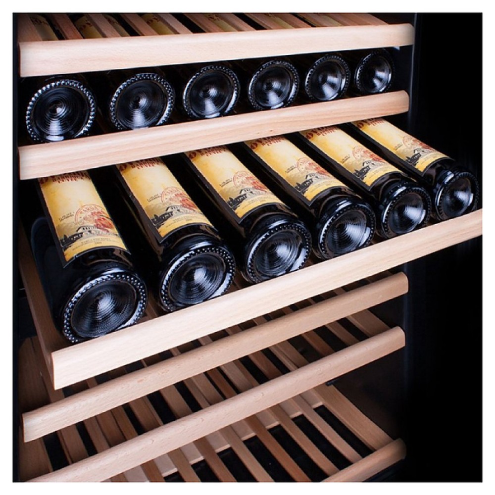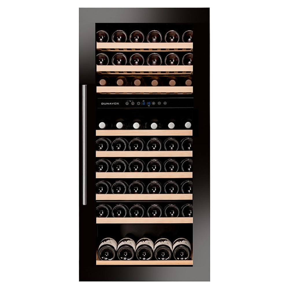 Винный шкаф Dunavox DAB-89.215DB серии Built-in предназначен для демонстрации, хранения и создания оптимальных условий для сохранения всех вкусовых свойств вина в бутылках на предприятиях общественного питания, торговли, в барах, ресторанах, специализированных магазинах, частных домах или квартирах. Модель оснащена сенсорной панелью управления и LED-подсветкой синего цвета в каждой зоне. Корпус выполнен из окрашенного металла, дверь - из рамы черного цвета и тонированного стекла с защитой от ультрафиолетовых лучей, выдвижные полки - из нелакированного бука, накладная ручка двери - из нержавеющей стали.