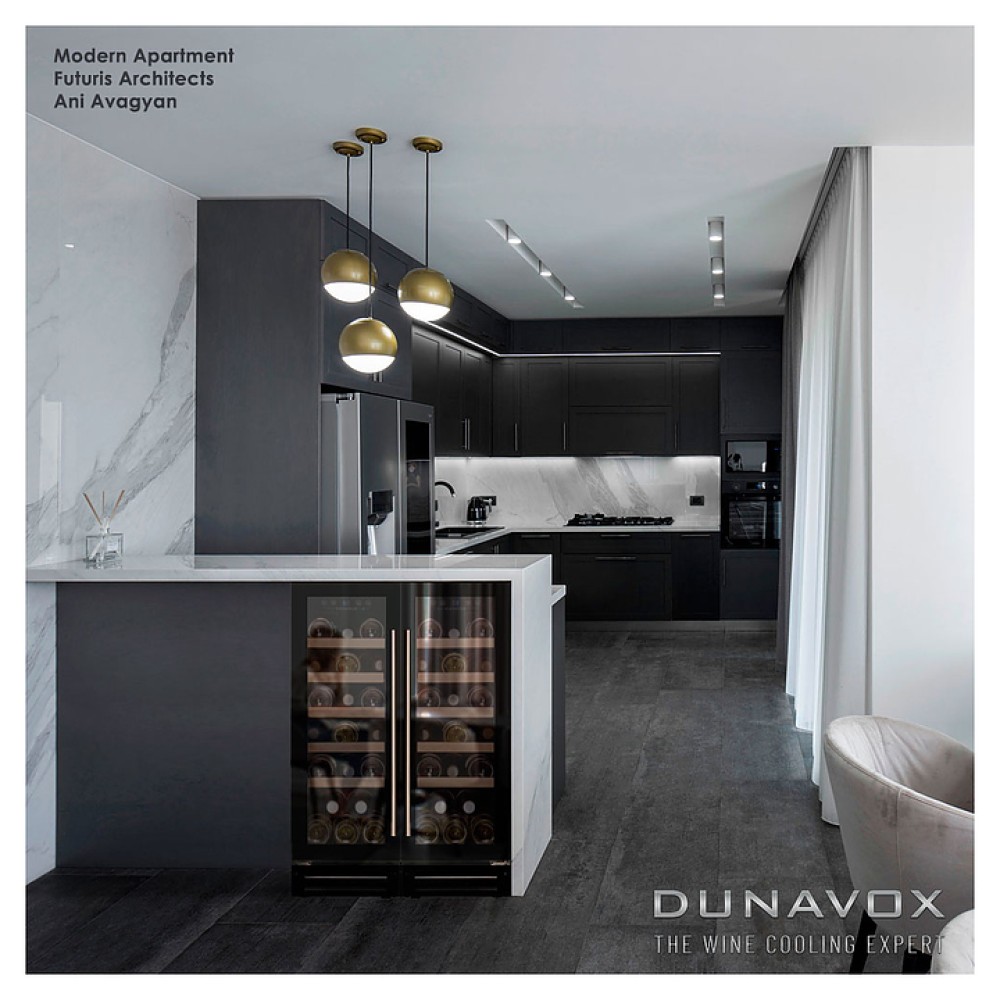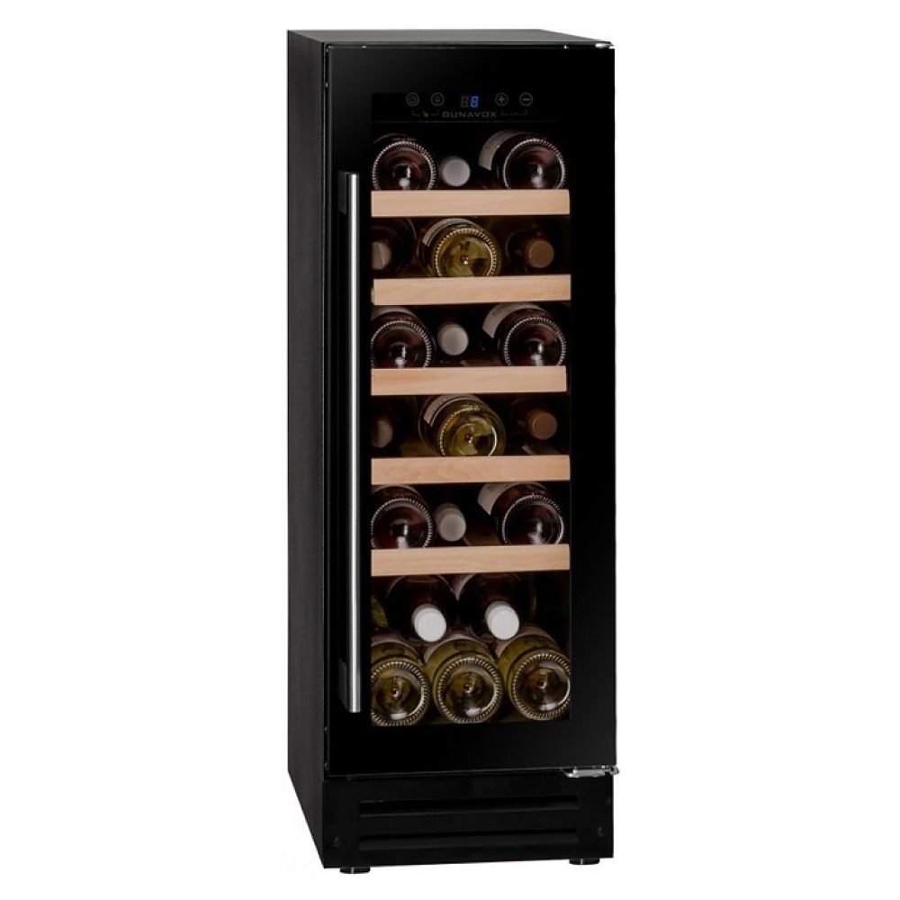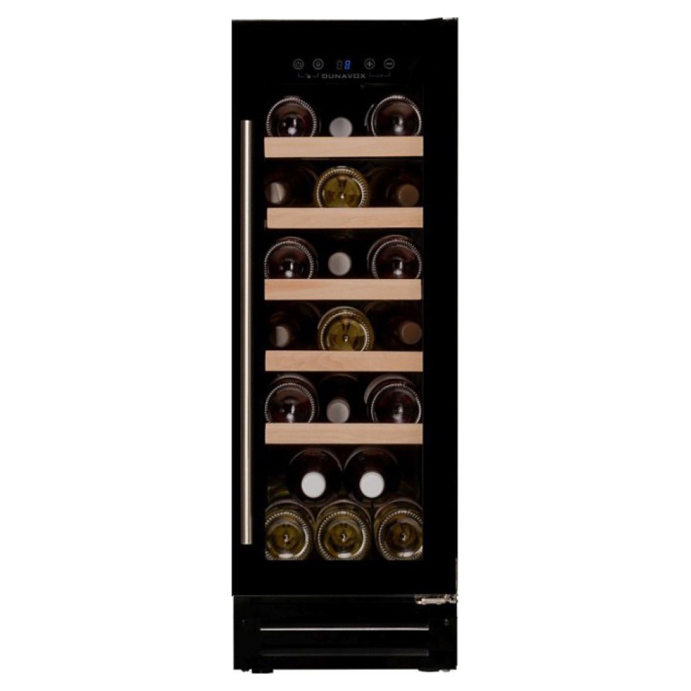 Винный шкаф Dunavox DAU-19.58B предназначен для демонстрации, хранения и создания оптимальных условий для сохранения всех вкусовых свойств вина в бутылках на предприятиях общественного питания, торговли, в барах, ресторанах, специализированных магазинах, частных домах или квартирах. Модель оснащена сенсорной панелью управления и LED-подсветкой синего цвета в каждой зоне. Корпус выполнен из окрашенного металла, дверь - из рамы черного цвета и тонированного стекла с защитой от ультрафиолетовых лучей, полки - из дерева, накладная ручка двери - из нержавеющей стали.