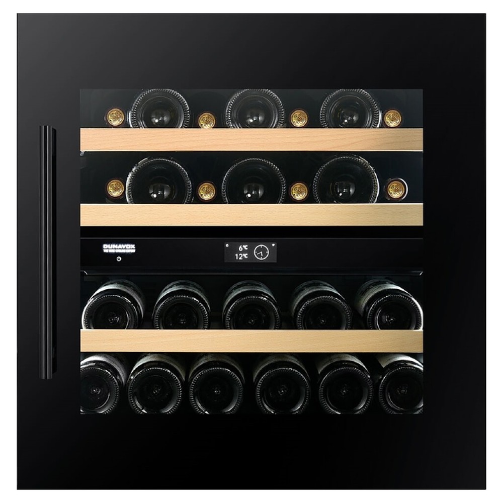 Винный шкаф Dunavox DVP-25.65DB серии PRIME-25D предназначен для охлаждения, хранения при оптимальных условиях и демонстрации бутилированного вина различных сортов в барах, ресторанах, специализированных магазинах, подсобных складских помещениях, гостиницах, а также домашних условиях. Модель оснащена холодильной камерой с 2 температурными зонами, перенавешиваемой распашной дверью с магнитным уплотнением, обзорным остеклением, вертикальной рукояткой и расположенным внутри камеры сенсорным TFT-дисплеем управления и индикации. Корпус выполнен из стали, фронт дверной рамы черного цвета, полки – из массива буковой древесины.