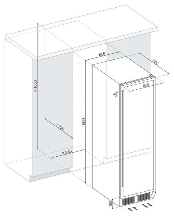 | Высота1835 мм | Глубина680 мм | Ширина655 мм |