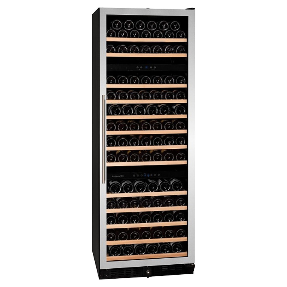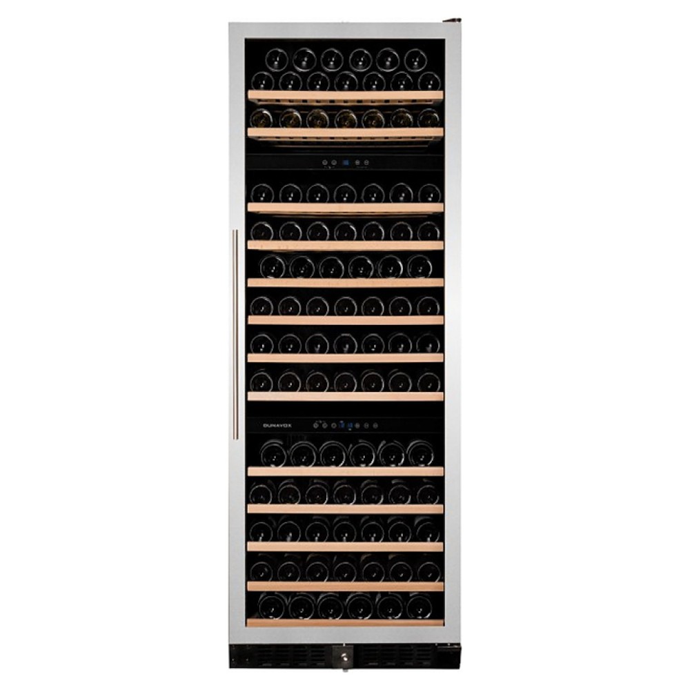 Винный шкаф Dunavox DX-170.490STSK серии Exclusive предназначен для демонстрации, хранения и создания оптимальных условий для сохранения всех вкусовых свойств вина в бутылках на предприятиях общественного питания, торговли, в барах, ресторанах, специализированных магазинах, частных домах или квартирах. Модель оснащена сенсорной панелью управления и LED-подсветкой синего цвета в каждой зоне. Корпус выполнен из окрашенного металла, дверь - из бесшовной стальной рамы и тонированного стекла с защитой от ультрафиолетовых лучей, выдвижные полки - из нелакированного бука, накладная ручка двери - из нержавеющей стали.