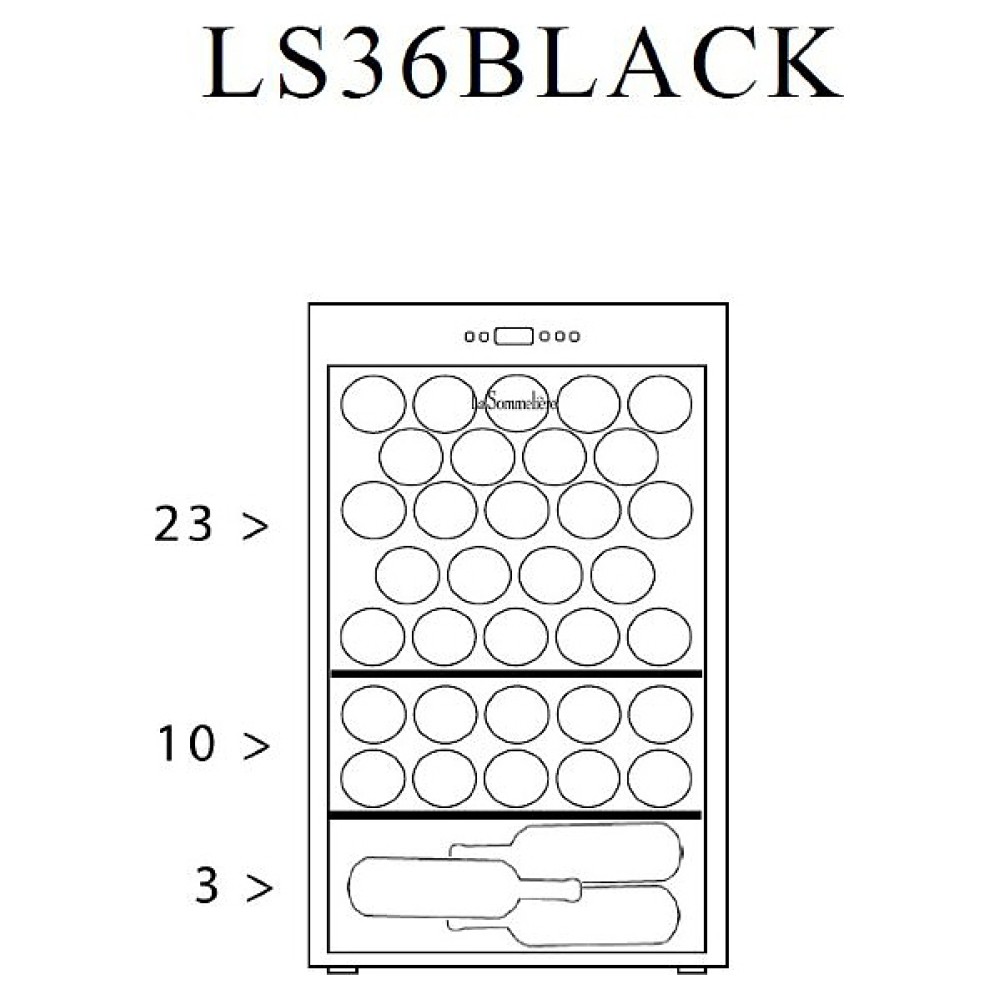 Винный шкаф La Sommeliere LS36BLACK предназначен для кратковременного хранения бутилированного вина в ресторанах, специализированных магазинах, подсобных складских помещениях, в частных домах или квартирах. Модель оснащена сенсорным цифровым дисплеем, подсветкой, 3 фиксированными полками, 1 фиксированной полуполкой, 2 регулируемыми ножками и 2 колесами. Дверь выполнена из стеклопакета с защитой от УФ-излучений, полки - из натурального дерева.