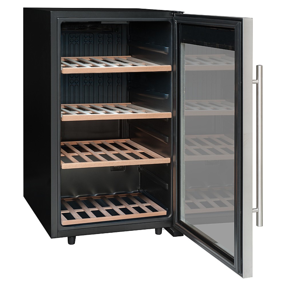 Винный шкаф La Sommeliere LS52A серии Service создает оптимальные условия для сохранения всех вкусовых свойств разливного вина в ресторанах, специализированных магазинах, подсобных складских помещениях, в частных домах или квартирах. Оборудование оснащено дверью с рамкой из нержавеющей стали, стеклом с защитой от ультрафиолетовых лучей и 4 полками из бука.