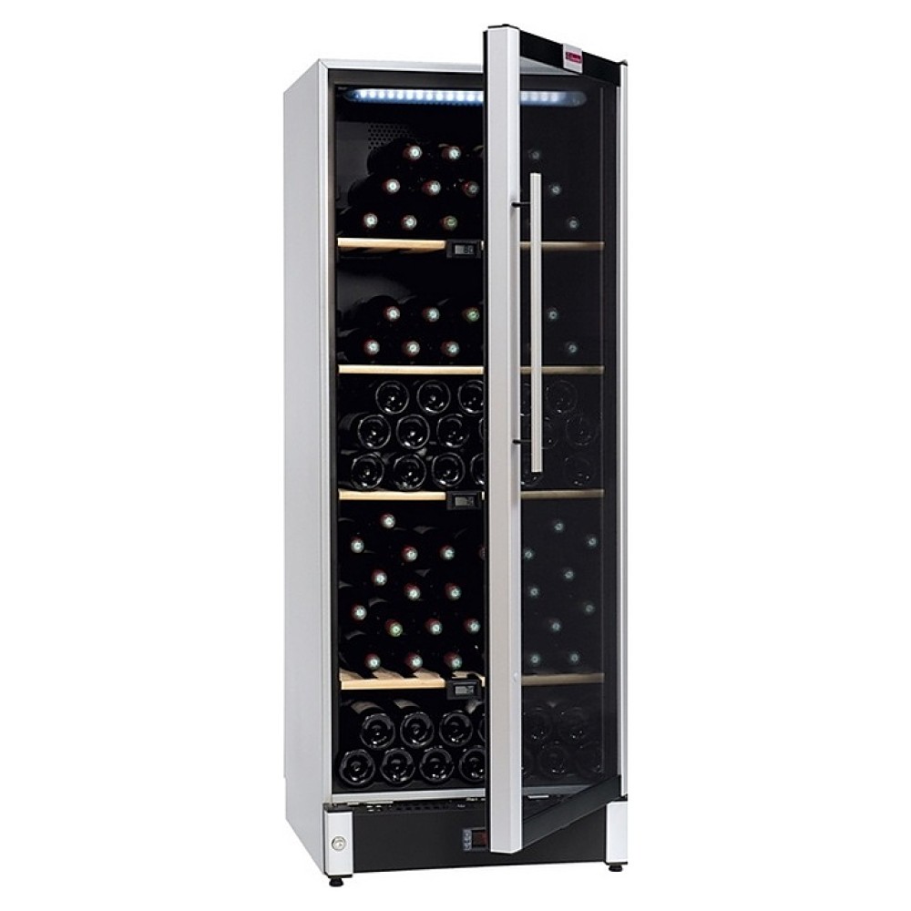 Винный шкаф La Sommeliere VIP160 серии Prestige создает оптимальные условия для сохранения всех вкусовых свойств разливного вина в ресторанах, специализированных магазинах, подсобных складских помещениях, в частных домах или квартирах. Оборудование оснащено дверью с рамкой из алюминия, 2х слойным стеклом с защитой от ультрафиолетовых лучей и 4 полками из дуба.