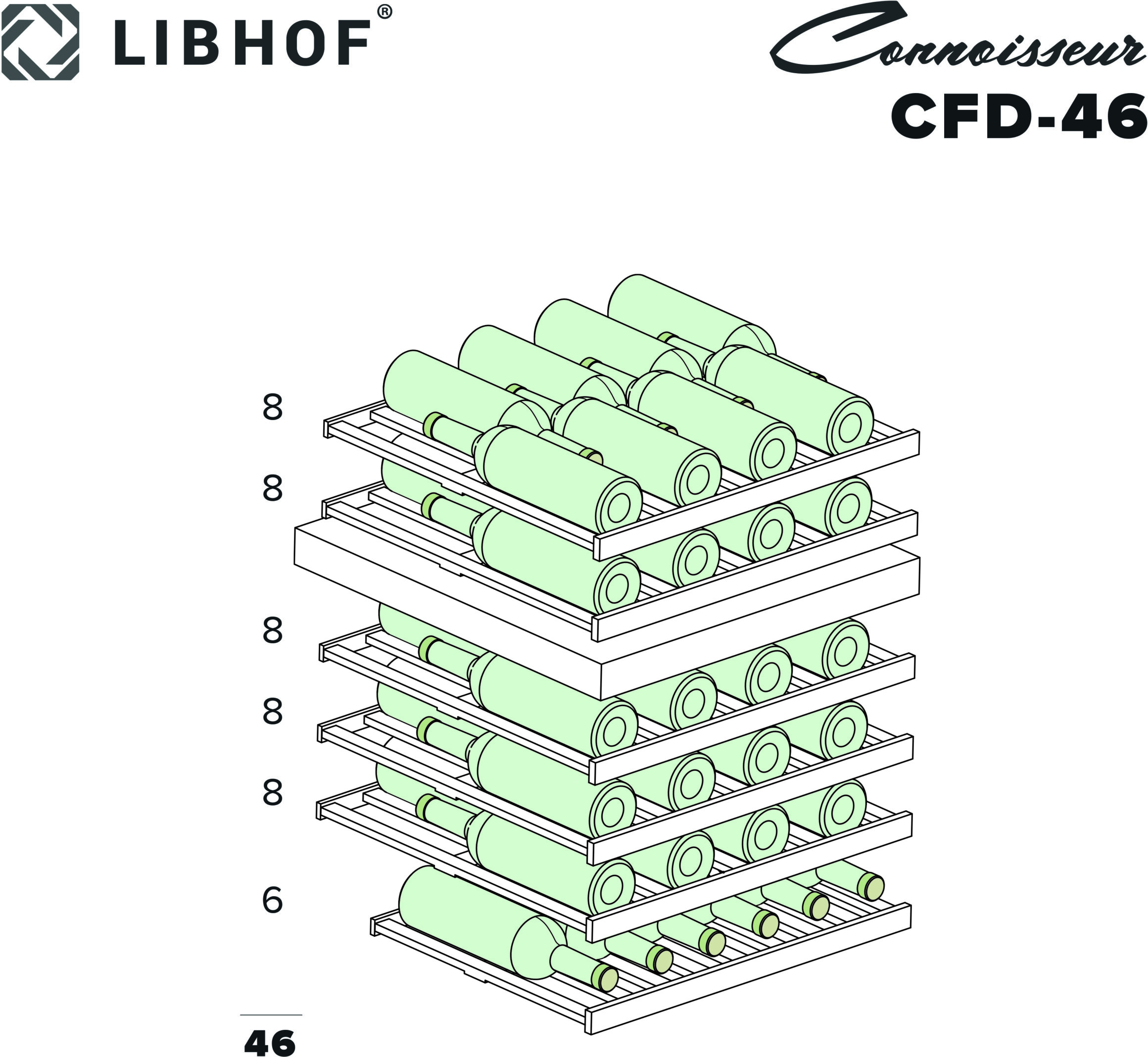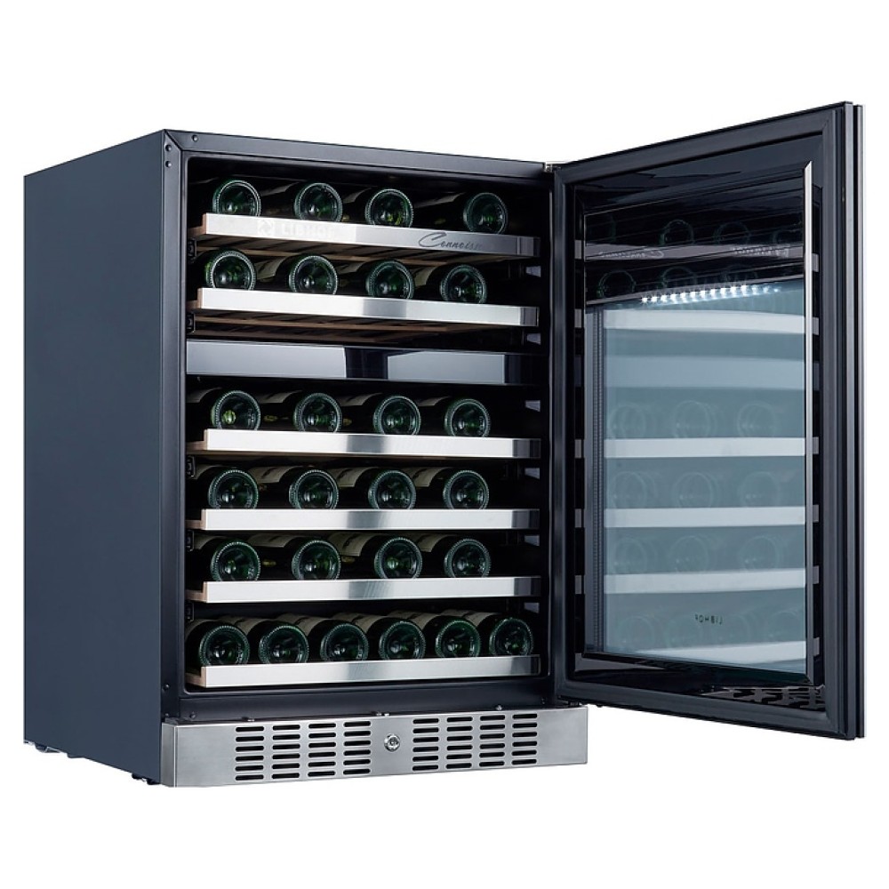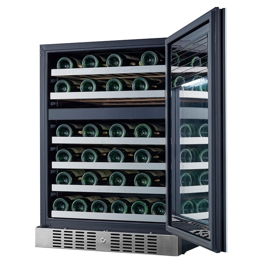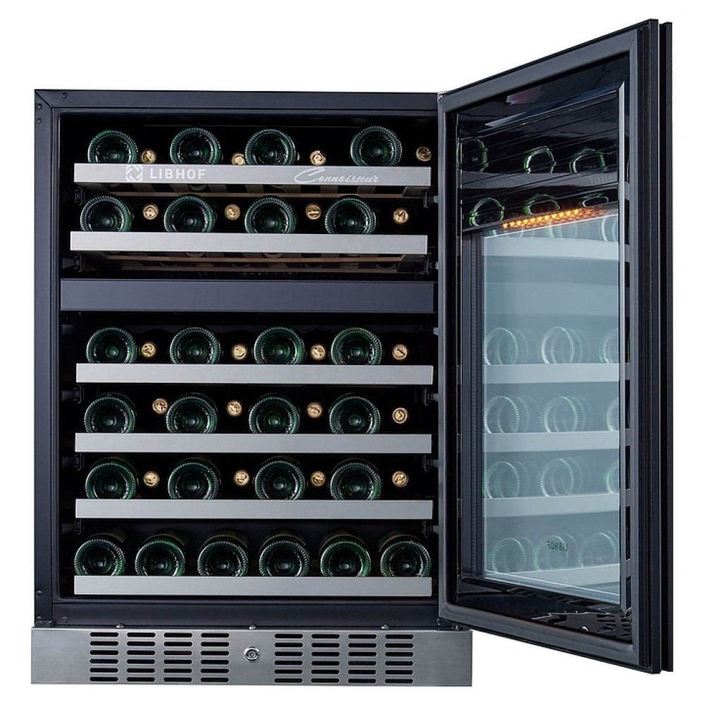 Встраиваемый винный шкаф Libhof Connoisseur CFD-46 White предназначен для хранения при оптимальных условиях бутилированного вина различных сортов в барах, ресторанах, специализированных магазинах, подсобных складских помещениях, а также домашних условиях. Модель оснащена холодильной камерой с 2 независимыми температурными зонами, съемной цокольной вентиляционной решеткой, запираемой на ключ распашной дверью на внешних петлях, интегрированной рукояткой, прозрачным обзорным остеклением, внешней сенсорной панелью управления и цифровым дисплеем. Корпус выполнен из металла с антикоррозийным покрытием черного цвета, полки – из массива буковой древесины с хромированной окантовкой фасада, фронт двери белого цвета.