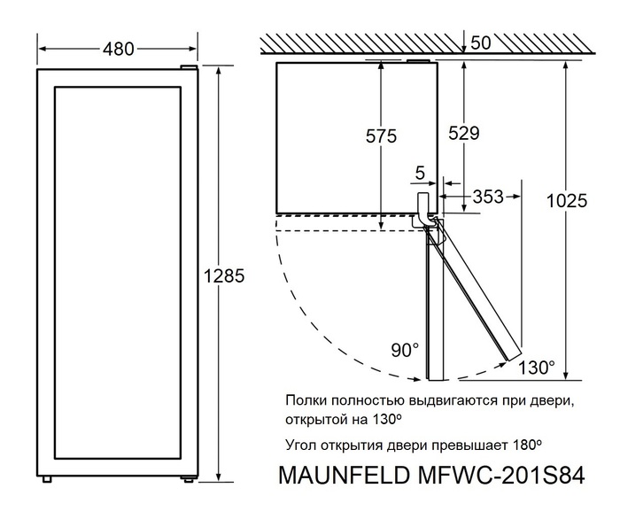 | Вес(С упаковкой)44.92 кг | Вместимость84 бут. | Дверной упорпетли справа |
