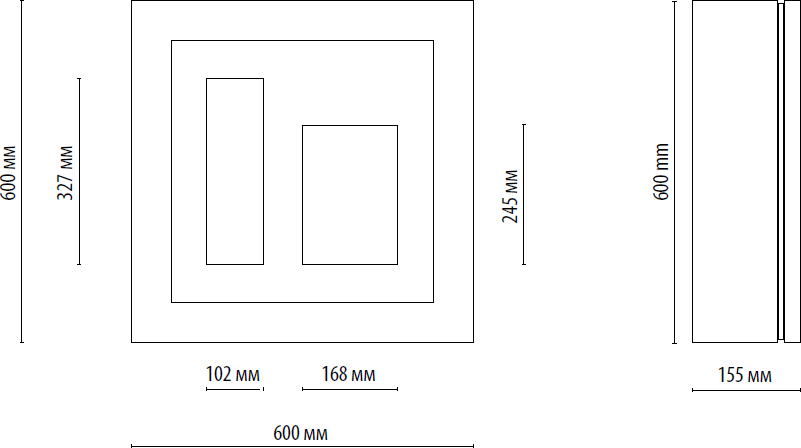 | Высота600 мм | Глубина155 мм | Ширина600 мм |