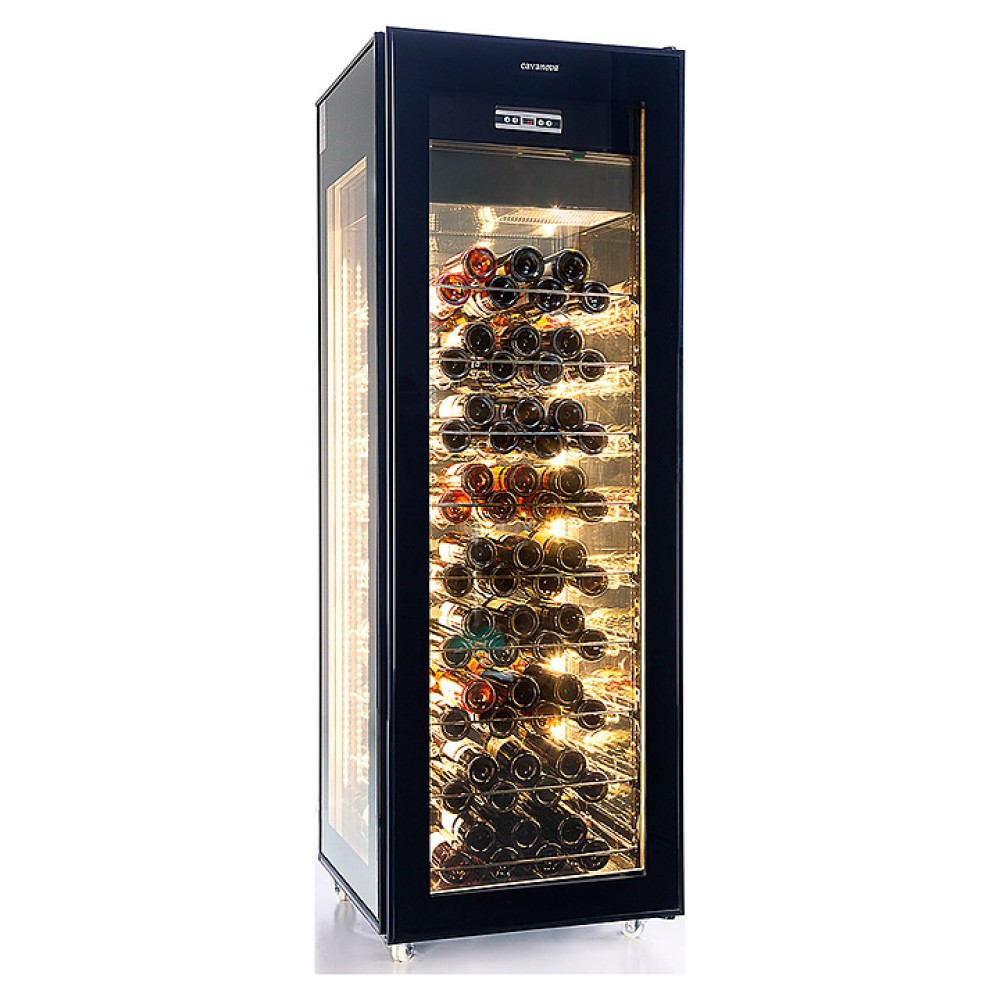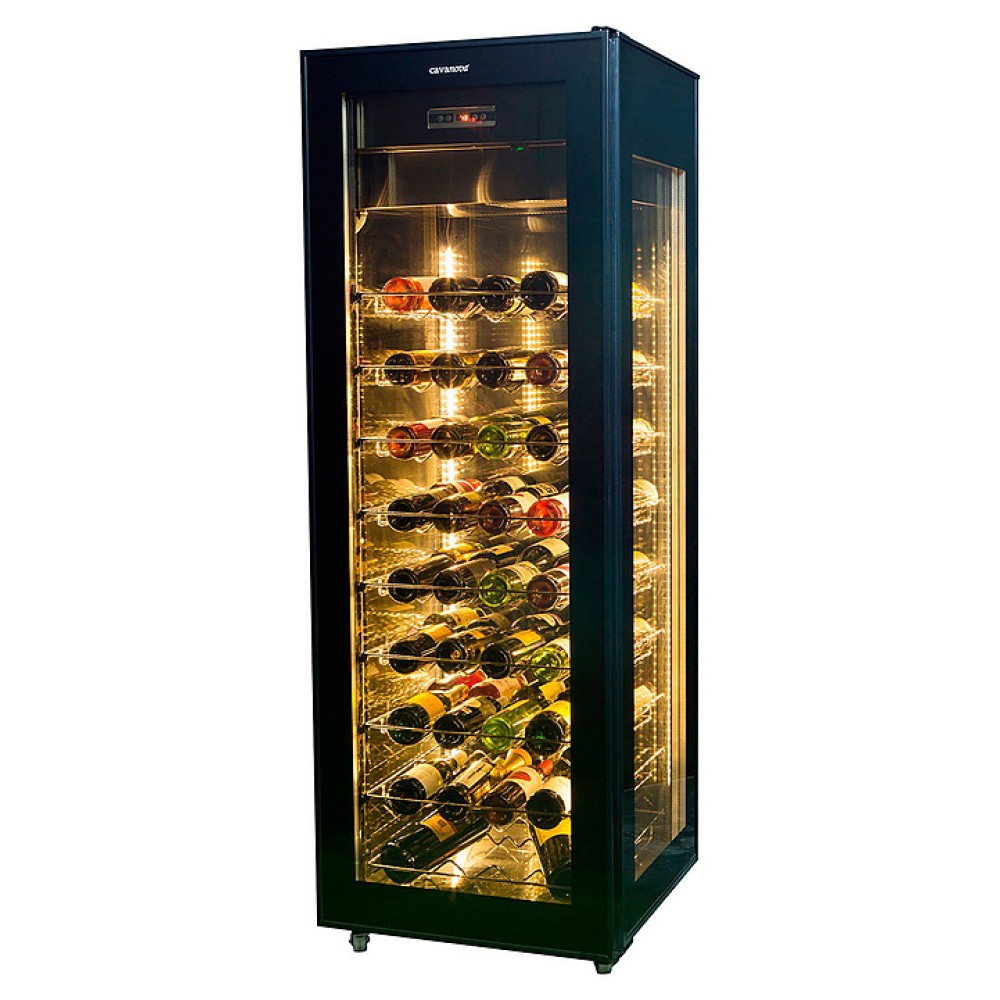 Винный шкаф Cavanova CVVT400 создает оптимальные условия для сохранения всех вкусовых свойств разливного вина в барах, ресторанах, специализированных магазинах, частных домах или квартирах. Модель оснащена светодиодной подсветкой мягкого белого цвета. Корпус выполнен из черного металла, дверь и стенки - из двойного тонированного стеклопакета с УФ-фильтром, полки - из хромированного металла.