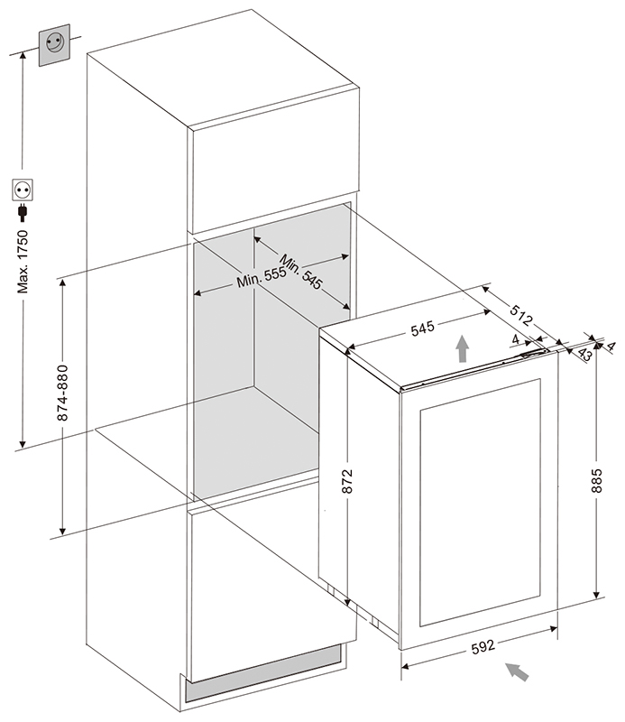 | Высота885 мм | Глубина559 мм | Ширина592 мм |
