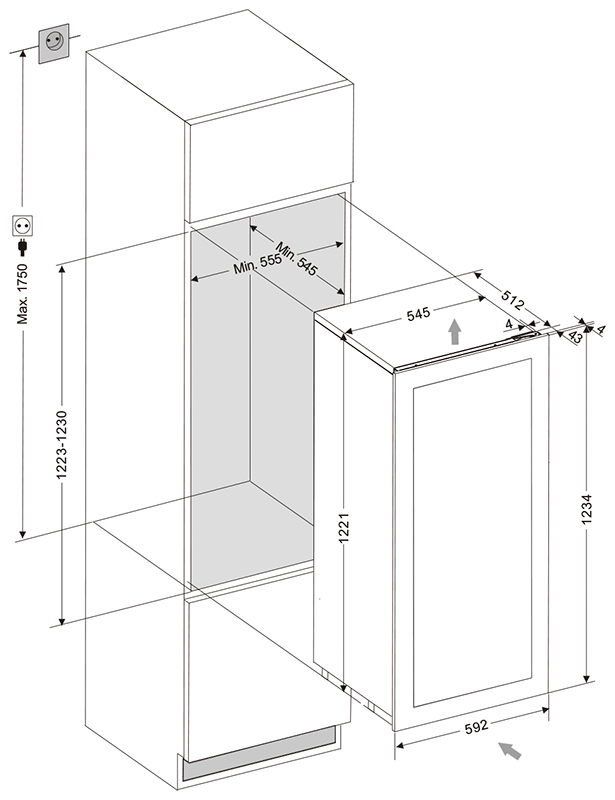 | Высота1234 мм | Глубина559 мм | Ширина592 мм |