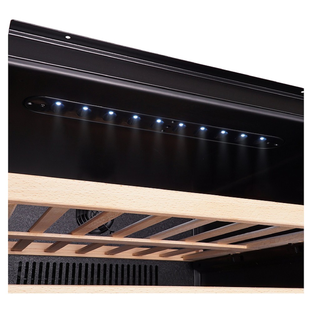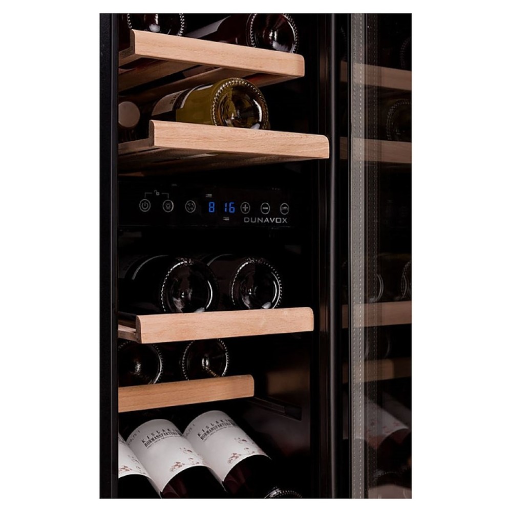 Винный шкаф Dunavox DAUF-17.58DSS предназначен для демонстрации, хранения и создания оптимальных условий для сохранения всех вкусовых свойств вина в бутылках на предприятиях общественного питания, торговли, в барах, ресторанах, специализированных магазинах, частных домах или квартирах. Модель оснащена сенсорной панелью управления и электронным термостатом. Рама дверцы выполнена из бесшовной нержавеющей стали, корпус и ручка - из стали, полки - из массива бука.