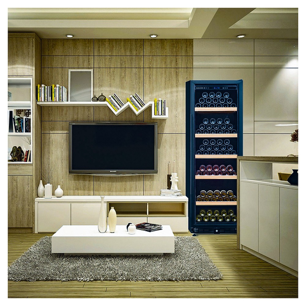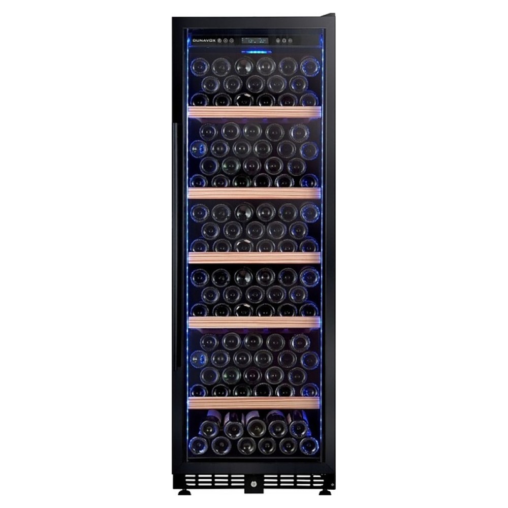 Винный шкаф Dunavox DX-198.450K серии Horeca предназначен для демонстрации, хранения и создания оптимальных условий для сохранения всех вкусовых свойств вина в бутылках на предприятиях общественного питания, торговли, в барах, ресторанах, специализированных магазинах, частных домах или квартирах. Модель оснащена сенсорной панелью управления и синей LED-подсветкой, дверным замком. Дверь выполнена из рамы черного цвета и тонированного стекла с защитой от ультрафиолетовых лучей, выдвижные полки - из нелакированного сапеле (древесина).