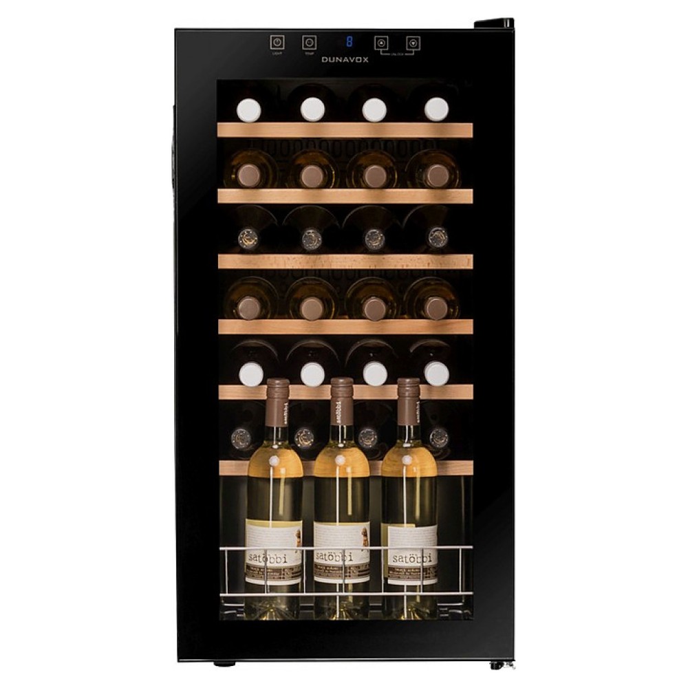 Винный шкаф Dunavox DX-28.88KF серии Home предназначен для демонстрации, хранения и создания оптимальных условий для сохранения всех вкусовых свойств вина в бутылках на предприятиях общественного питания, торговли, в барах, ресторанах, специализированных магазинах, частных домах или квартирах. Модель оснащена сенсорной панелью управления и LED-подсветкой. Корпус выполнен из окрашенного металла, дверь - из рамы черного цвета и тонированного стекла с защитой от ультрафиолетовых лучей, полки - из нелакированного бука, демонстрационная решетка - из металла.