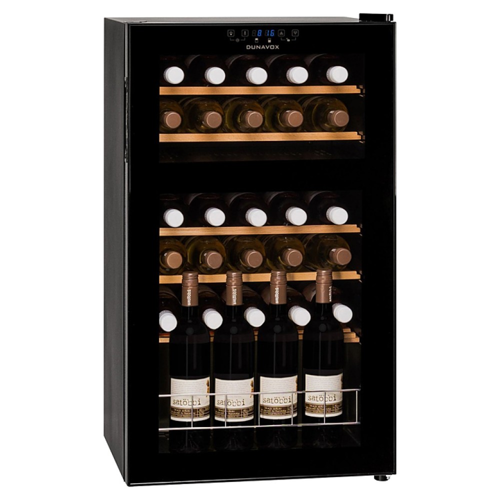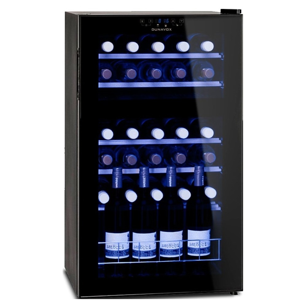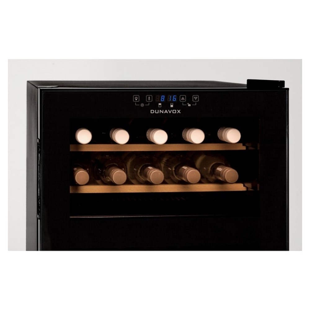Винный шкаф Dunavox DX-30.80DK предназначен для демонстрации, хранения и создания оптимальных условий для сохранения всех вкусовых свойств вина в бутылках на предприятиях общественного питания, торговли, в барах, ресторанах, специализированных магазинах, частных домах или квартирах. Модель оснащена сенсорной панелью управления и LED-подсветкой. Корпус выполнен из окрашенного металла, дверь - из рамы черного цвета и тонированного стекла с защитой от ультрафиолетовых лучей, полки - из нелакированного бука, демонстрационная решетка - из металла.