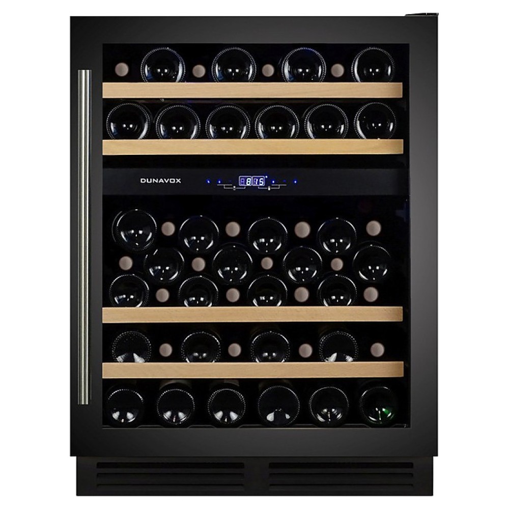 Винный шкаф Dunavox DX-53.130DBK/DP серии Exclusive предназначен для демонстрации, хранения и создания оптимальных условий для сохранения всех вкусовых свойств вина в бутылках на предприятиях общественного питания, торговли, в барах, ресторанах, специализированных магазинах, частных домах или квартирах. Модель оснащена сенсорной панелью управления и LED-подсветкой синего цвета в каждой зоне. Корпус выполнен из окрашенного металла, дверь - из рамы черного цвета и тонированного стекла с защитой от ультрафиолетовых лучей, выдвижные полки - из нелакированного бука, накладная ручка двери - из нержавеющей стали.