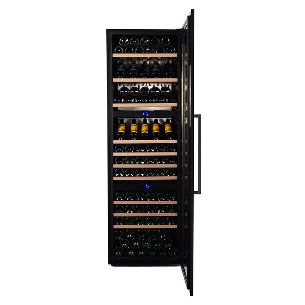 Винный шкаф Dunavox DX-89.246TB предназначен для демонстрации, хранения и создания оптимальных условий для сохранения всех вкусовых свойств вина в бутылках на предприятиях общественного питания, торговли, в барах, ресторанах, специализированных магазинах, частных домах или квартирах. Модель оснащена сенсорной панелью управления, электронным термостатом и LED-подсветкой синего цвета. Корпус выполнен из стали, окрашенной в черный цвет, дверь - из рамы черного цвета и тонированного стекла с защитой от ультрафиолетовых лучей, выкатные и демонстрационная полки - из бука, ручка - из нержавеющей стали.