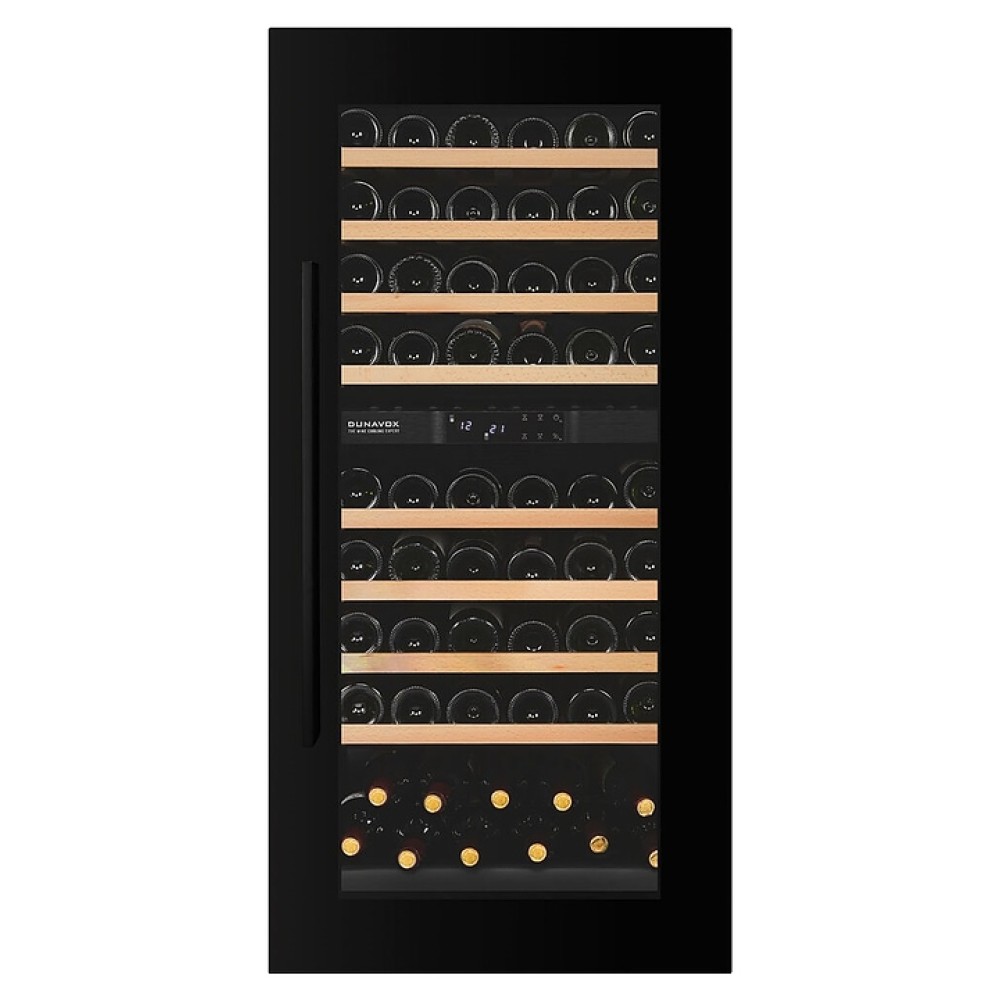 Винный шкаф Dunavox DXJ-65.154DB серии JOY-65 предназначен для охлаждения, хранения при оптимальных условиях и демонстрации бутилированного вина различных сортов в барах, ресторанах, специализированных магазинах, подсобных складских помещениях, гостиницах, а также домашних условиях. Модель оснащена холодильной камерой с 2 температурными зонами, перенавешиваемой распашной дверью с магнитным уплотнением, обзорным остеклением, вертикальной рукояткой, расположенной внутри камеры сенсорной панелью управления и жидкокристаллическим дисплеем. Корпус выполнен из стали, фронт дверной рамы черного цвета, полки – из массива буковой древесины.