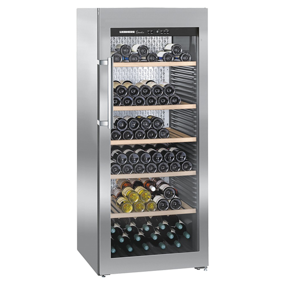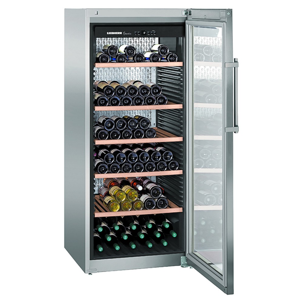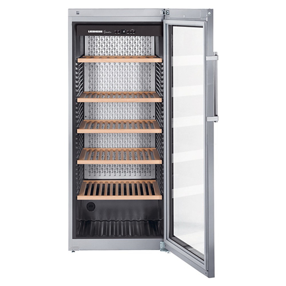 Винный шкаф Liebherr WKes 4552 серии GrandCru предназначен для охлаждения и длительного хранения разливного вина в частных домах, квартирах, отелях и офисах. Модель оснащена кнопочным управлением, дисплеем MagicEyeи цифровой индикацией температуры. Внутренняя прокладка выполнена из серого полистирола, корпус - из нержавеющей стали, дверь - из стекла с УФ-покрытием с и рамой из нержавеющей стали, полки - из дерева акации.