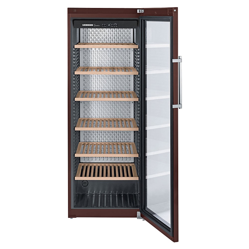 Винный шкаф Liebherr WKt 5552 серии GrandCru предназначен для охлаждения и длительного хранения разливного вина в частных домах, квартирах, отелях и офисах. Модель оснащена кнопочным управлением, дисплеем MagicEye и цифровой индикацией температуры. Внутренняя прокладка выполнена из серого полистирола, корпус - из стали, дверь - стекла с покрытием УФ, полки - из дерева акации.