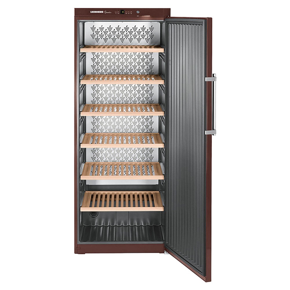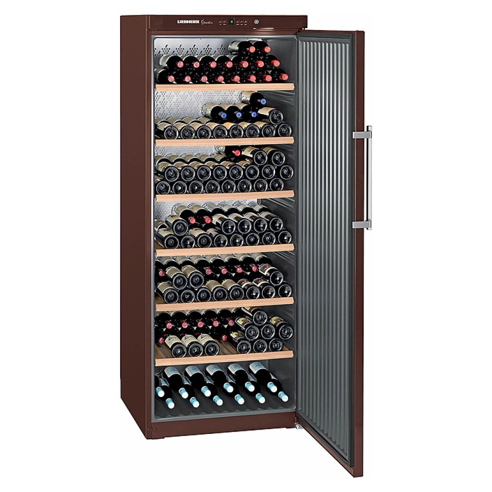 Винный шкаф Liebherr WKt 6451 серии GrandCru предназначен для охлаждения и длительного хранения разливного вина в частных домах, квартирах, отелях и офисах. Модель оснащена кнопочным управлением, дисплеем MagicEye и цифровой индикацией температуры. Внутренняя прокладка выполнена из серого полистирола, корпус и дверь - из стали, полки - из дерева акации.