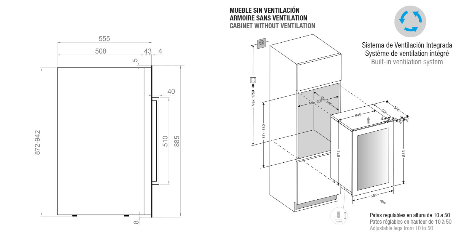 | Вес (без упаковки)52 кг | Вместимость45 бут. | ВстраиваемыйДа |