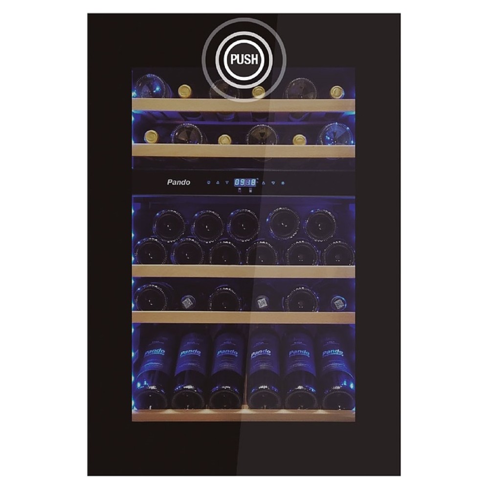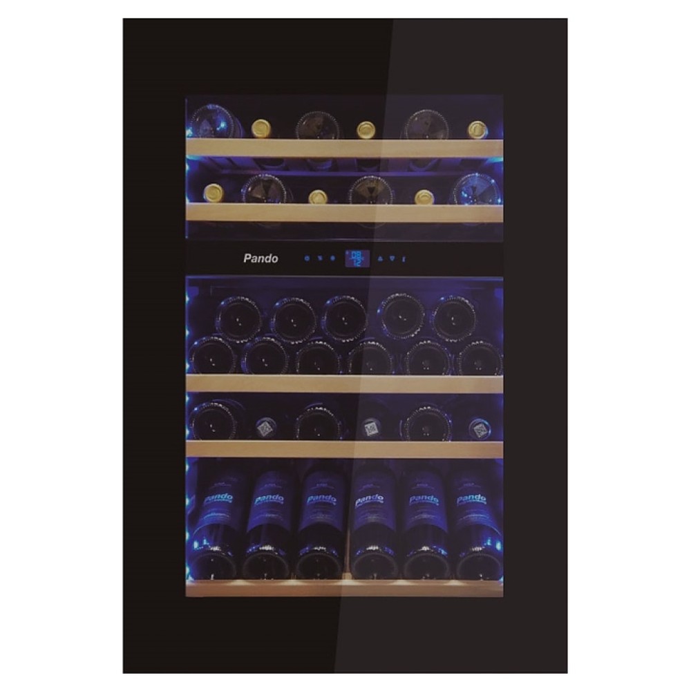 Винный шкаф Pando PVMAVP 88-45CRR W предназначен для хранения при оптимальных условиях и предпродажной демонстрации бутилированного вина различных сортов в барах, ресторанах, специализированных магазинах, подсобных складских помещениях, а также домашних условиях. Модель оснащена холодильной камерой с 2 температурными зонами, правосторонней распашной дверью, внутренней сенсорной панелью управления и светодиодными цифровыми дисплеями с белой подсветкой индикации. Корпус выполнен из стали с антикоррозийным покрытием черного цвета, дверь с полным фронтальным остеклением без винтового крепежа из закаленного стекла с прозрачной дымчатой тонировкой, внутренняя облицовка камеры черного цвета, полки – из массива буковой древесины.