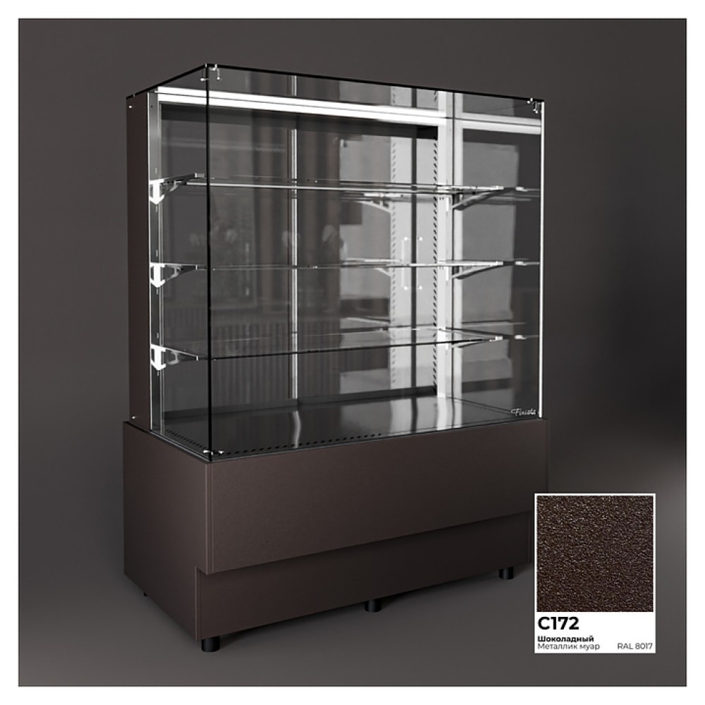 Напольная холодильная витрина Finist AIR A-10-7-163 среднетемпературная предназначена для экспозиции и временного хранения кондитерских изделий. Доступ к продукции осуществляется с помощью раздвижных дверей купе. Конструкция позволяет размещать продукцию на трех стеклянных полках и дне витрины. В стандартном оснащении комплектуется боковыми стеклами и фасадами, которые имеют съемную конструкцию. Корпус изготовлен из крашеной стали.
